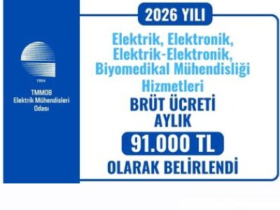 Elektrik Mühendisleri Odası (EMO) Yönetim Kurulu, Elektrik, Elektronik, Elektrik-Elektronik, Biyomedikal Mühendisliği hizmetleri ücretinin 2026 yılı için brüt 91.000 TL/ay olarak belirlenmesine karar verdi. Serbest mühendislik bürolarında ücretli çalışan üyeler için de bu ücret uygulanacak.