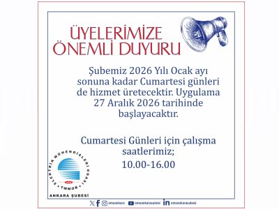COPYRIGHT © 2005-2026 TMMOB ELEKTRİK MÜHENDİSLERİ ODASI GENEL MERKEZİIHLAMUR SOKAK NO:10 KIZILAY/ANKARATEL: +90 (312) 425 32 72 (PBX) - FAKS: +90 (312) 417 38 18 KEP ADRESİ : emo.merkez@hs01.kep.tr