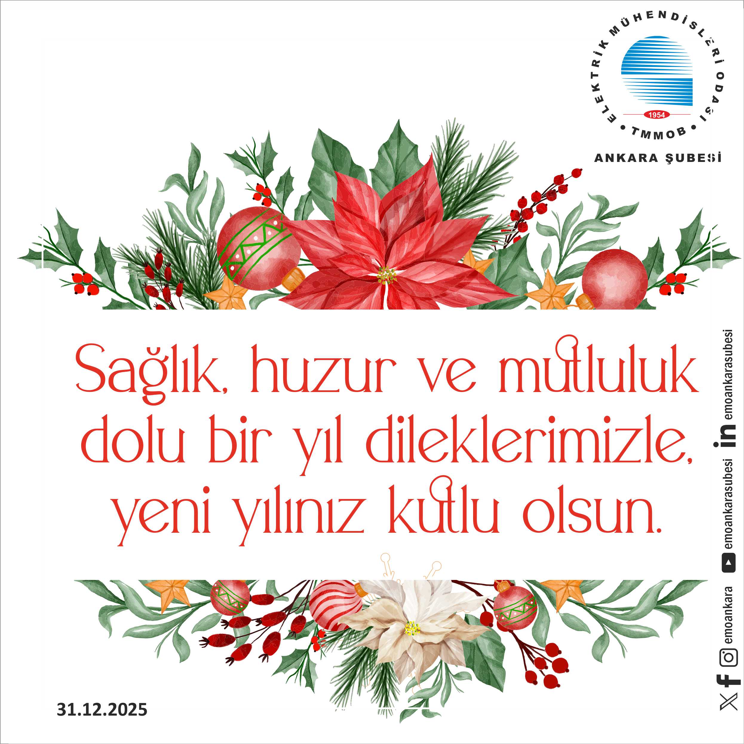 Sağlık, huzur ve mutluluk dolu bir yıl dileklerimizle, yeni yılınız kutlu olsun.