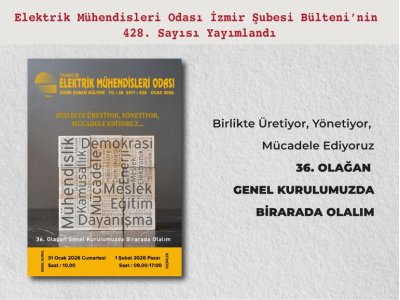 Elektrik Mühendisleri Odası (EMO) İzmir Şubesi Bülteni’nin Ocak 2026 tarihli 428. sayısı, “Birlikte Üretiyor, Yönetiyor, Mücadele Ediyoruz…” kapağıyla yayımlandı. Bültenimizi yazımızın devamında yer alan bağlantılar üzerinden okuyabilirsiniz.