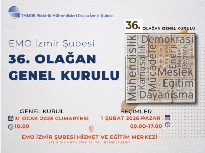 24 Ocak 2026 tarihinde çoğunluklu olarak, 31 Ocak -1 Şubat 2026 tarihlerinde çoğunluk aranmaksızın yapılacak olan EMO İzmir Şubesi 36. Olağan Genel Kurulu’nda oy kullanacak üyelere ait hazirun listesi 17-19 Ocak 2026 tarihleri arasında üç gün süreyle Şubemizde askıya çıkacaktır.