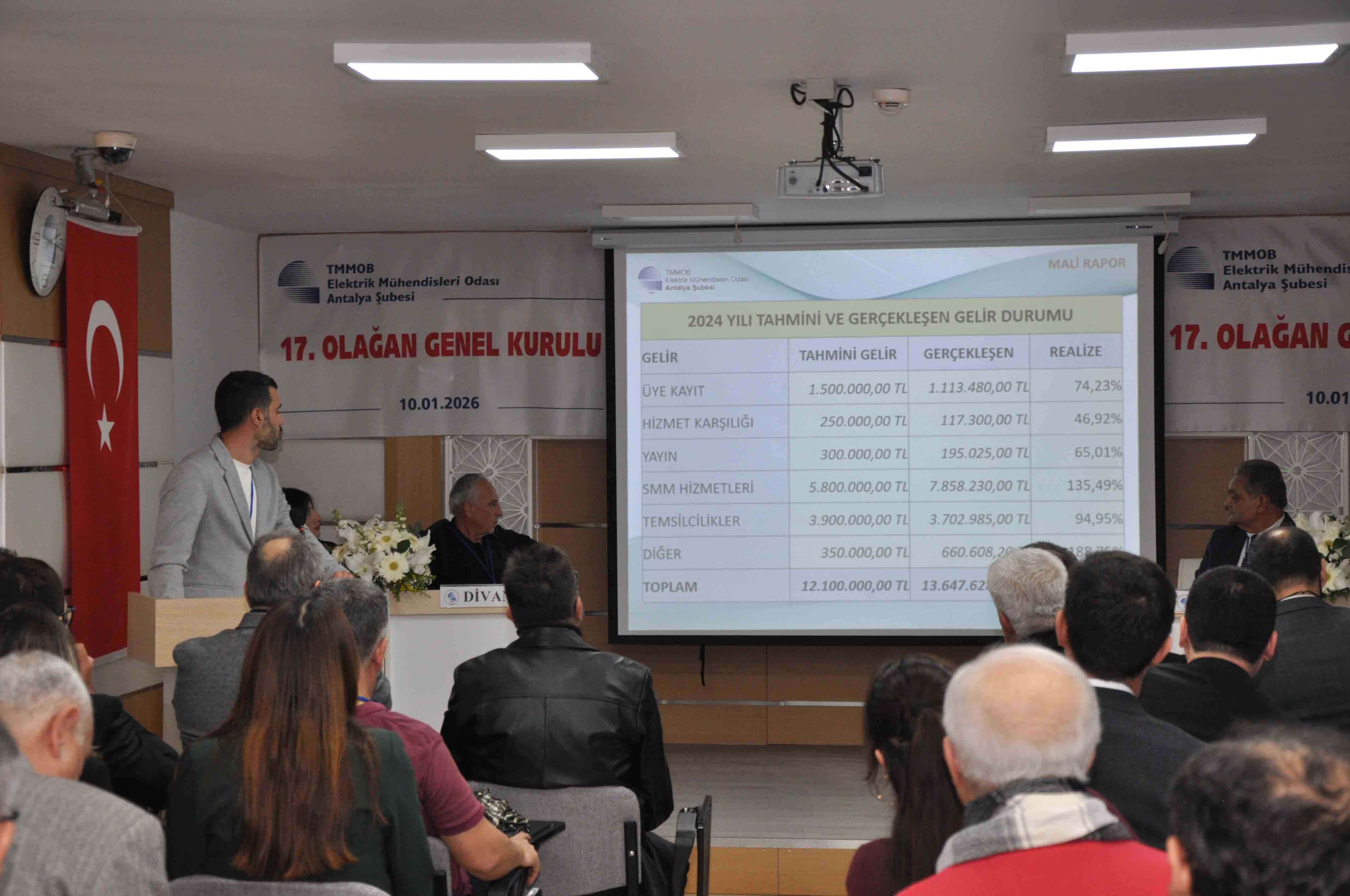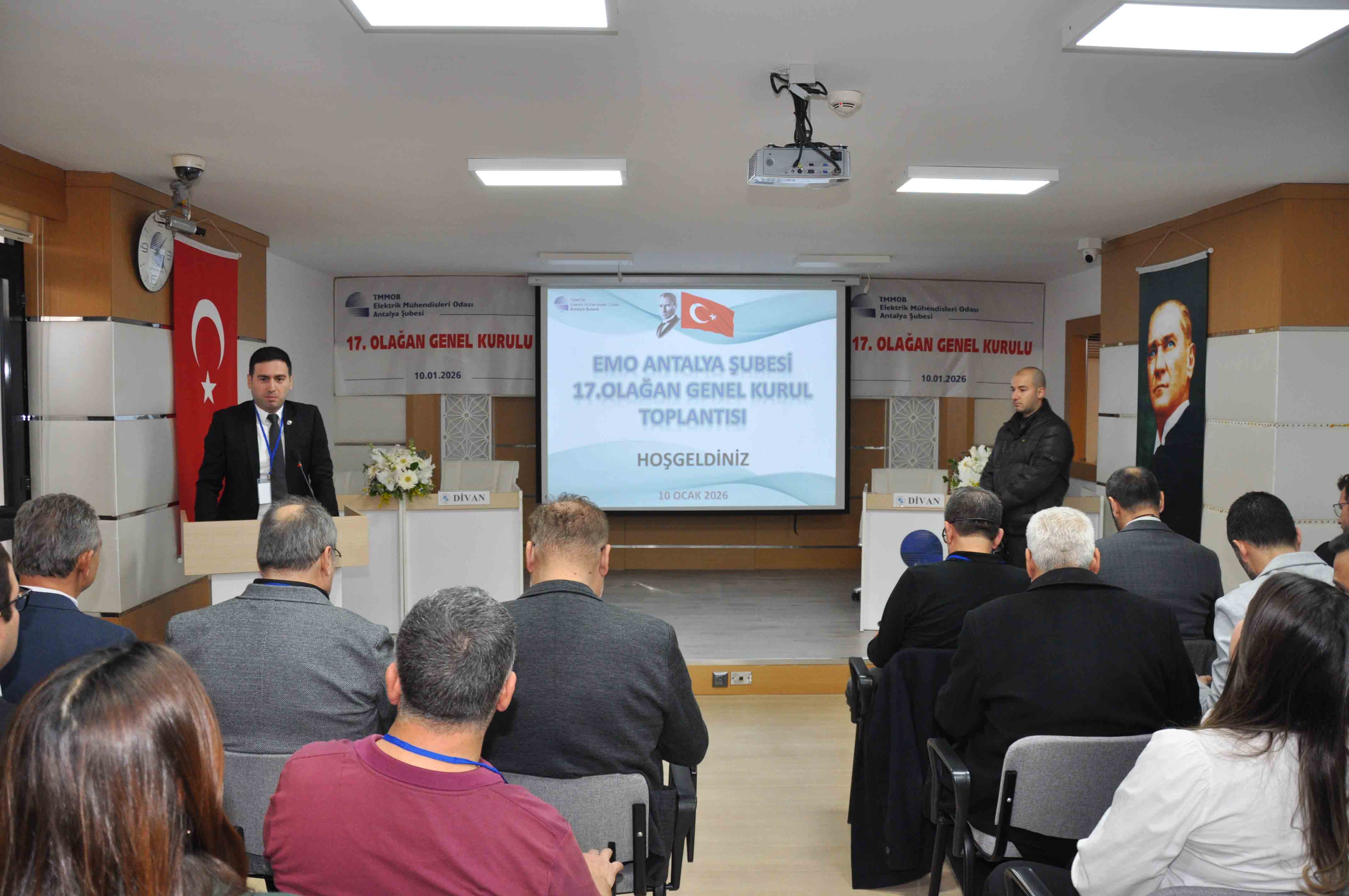 EMO Antalya Şubesi 17. Olağan Genel Kurulu, saat 13.00`te 16. Dönem Yönetim Kurulu Başkan Yardımcısı Durali Çakır`ın açılış konuşmasıyla başladı. Genel Kurula sunulan önerge doğrultusunda, 13572 oda sicil numaralı İbrahim Koru oy birliğiyle Divan Başkanı seçildi. Divan Başkan Yardımcılığına 61515 oda sicil numaralı Aslıhan Karakaş, yazman üyeliklere ise 99005 oda sicil numaralı Tuba Öncül ve 10558 oda sicil numaralı Mehmet Tuğrul oy birliğiyle seçildi. Divanın oluşturulmasının ardından toplantı gündemi okunarak Genel Kurulun onayına sunuldu ve oy birliğiyle kabul edildi. Gündem maddelerinin kabulünü takiben, Cumhuriyetimizin Kurucusu Büyük Önder Mustafa Kemal Atatürk, aziz şehitlerimiz ve kahraman gazilerimiz anısına saygı duruşunda bulunuldu ve İstiklal Marşı okundu. Şaban Tat: "Kurumsal yapıyı birlikte güçlendirdik" Gündemin 4. maddesinde söz alan 16. Dönem Şube Yönetim Kurulu Başkanı Şaban Tat, EMO Antalya Şubesi`nin bugünlere gelmesinde emeği bulunan tüm üyelere, yönetim kurulu üyelerine ve şube çalışanlarına teşekkür etti. Göreve geldikleri günden itibaren ekip anlayışıyla çalıştıklarını vurgulayan Tat, Antalya Şubesi`nde güçlü ve kurumsal bir yapı oluşturulduğunu belirterek, yeni dönemde de başarılı çalışmaların ortak akılla sürdürüleceğini ifade etti. Konuklardan Genel Kurula başarı dilekleri Gündemin 5. maddesinde konuk olarak EMO Yönetim Kurulu Yazmanı Ender Kelleci, Harita ve Kadastro Mühendisleri Odası Antalya Şube Başkanı Serter Kocababa, Jeoloji Mühendisleri Odası Antalya Şube Başkanı Mustafa Karancı ve Jeofizik Mühendisleri Odası Antalya Şube Başkanı Yüksel Karaman söz aldı. Konuklar, EMO`nun geçmiş dönem yöneticilerini tebrik ederek Genel Kurulun hayırlı olmasını diledi. Genel Kurulda gözlemci olarak EMO Mersin Şube Başkanı Prof. Dr. Alkan Alkaya görev yaptı. Çalışma raporu ve mali sunum yapıldı 16.Dönem Şube Yönetim Kurulu Yazman Üyesi Emre Eke tarafından, iki yıllık dönem boyunca gerçekleştirilen şube çalışmaları, TMMOB İKK etkinlikleri, komisyon faaliyetleri, kurumlarla ortak yürütülen çalışmalar ve EMO-Genç etkinlikleri hakkında kapsamlı bir sunum yapıldı. Ardından Sayman Üye Seyit Çağrı Yıldırım, çalışma raporunun mali bölümünü Genel Kurula özet olarak sundu. Önceki Dönemlerde Şubemizin Yönetim Kurulu Başkanlığı yapan ve 49. Dönem EMO Onur Kurulu Başkanı İlhan Metin de söz alarak, 16. Dönem Yönetim Kurulunun çalışmalarını takdir etti. Antalya Şubesi`nin kurumsallığı ve mali disipliniyle EMO Merkez ve diğer şubelere örnek olduğunu vurgulayan Metin, yeni seçilecek yönetime başarı dileklerini iletti. Üye konuşmalarının ardından yeniden söz alan Şube Başkanı Şaban Tat, yapılan değerlendirme ve eleştirilerin yol gösterici olduğunu belirterek, yeni dönemde de üyelerden alınan güçle çalışmaların sürdürüleceğini ifade etti. Yönetim ve Denetim Kurulları aklandı Gündemin 8. maddesinde yapılan oylama sonucunda, EMO Antalya Şubesi 16. Dönem Yönetim ve Denetim Kurulları oy birliğiyle ibra edildi. Ardından 2026–2027 yıllarını kapsayan tahmini gelir-gider bütçesi Sayman Üye Seyit Çağrı Yıldırım tarafından sunuldu ve oy birliğiyle kabul edildi. Seçimi Şaban Tat`ın listesi kazandı 11 Ocak 2026 Pazar günü Şube Hizmet Binası`nda gerçekleştirilen seçimlerde, 3401 üyeden 1026`sı oy kullandı. Seçimlerde Şaban Tat`ın başkanlığındaki liste ile Ayhan Dolanay`ın başkanlığındaki liste yarıştı. Seçimi Şaban Tat`ın listesi kazandı. 17. Dönem Yönetim Kurulu TMMOB Elektrik Mühendisleri Odası Antalya Şubesi 17. Dönem Yönetim Kurulu şu isimlerden oluştu: Asil Üyeler: Şaban Tat, Durali Çakır, İbrahim Kaymaz, Emre Eke, Seyit Çağrı Yıldırım, Burcu Bankoğlu, Gürkan Bulut Yedek Üyeler: Betül Ünal Pusmaz, Ozan Çopur, Nilay Güngör, Mahmut Çelik, Haldun Uyanık, Hakan Yeşil, Celal Şimşek Şube Denetçileri: Ahmet Aydın, Alper Gül, Ferhat Yamak Yedek Şube Denetçileri: Sinan Bozan, Gözde Yavuz, Mücahit Ali Türkmen Ayrıntılı seçim sonuçları aşağıdadır. DELEGE LİSTESİ TOPLAM Şaban TAT‘ın listesi 770 Ayhan DOLANAY‘ın listesi 233 | YÖNETİM KURULU ASIL ADAYLARI | ADAYLARIN SANDIKLARDAN ALDIKLARI OY SAYISI | | | SIRA NO | ADI SOYADI | 1 Nolu | 2 Nolu | 3 Nolu | 4 Nolu | 5 Nolu | 6 Nolu | 7 Nolu | 8 Nolu | 9 Nolu | 10 Nolu | 11 Nolu | 12 Nolu | 13 Nolu | 14 Nolu | Toplam | | | 1 | Şaban TAT | 49 | 66 | 66 | 82 | 66 | 81 | 63 | 63 | 45 | 39 | 49 | 36 | 37 | 39 | 781 | | | 2 | Durali ÇAKIR | 48 | 65 | 67 | 77 | 60 | 82 | 59 | 61 | 45 | 37 | 47 | 34 | 32 | 38 | 752 | | | 3 | İbrahim KAYMAZ | 43 | 54 | 61 | 76 | 57 | 74 | 55 | 56 | 42 | 37 | 42 | 31 | 28 | 32 | 688 | | | 4 | Emre EKE | 42 | 55 | 58 | 73 | 58 | 77 | 53 | 56 | 40 | 37 | 42 | 32 | 28 | 32 | 683 | | | 5 | Burcu BANKOĞLU | 41 | 56 | 63 | 73 | 56 | 77 | 52 | 55 | 39 | 37 | 41 | 32 | 28 | 32 | 682 | | | 6 | Seyit Çağrı YILDIRIM | 42 | 54 | 60 | 71 | 59 | 75 | 54 | 54 | 39 | 35 | 40 | 31 | 29 | 32 | 675 | | | 7 | Gürkan BULUT | 39 | 53 | 54 | 72 | 57 | 75 | 55 | 54 | 38 | 37 | 43 | 30 | 28 | 31 | 666 | | | 8 | Ayhan DOLANAY | 38 | 33 | 31 | 14 | 15 | 20 | 16 | 11 | 11 | 6 | 7 | 9 | 11 | 11 | 233 | | | 9 | Hasan GÖL | 28 | 35 | 28 | 11 | 14 | 19 | 13 | 11 | 10 | 5 | 7 | 9 | 9 | 12 | 211 | | | 10 | İrfan KURUÜZÜM | 34 | 31 | 26 | 10 | 13 | 17 | 11 | 9 | 11 | 5 | 6 | 9 | 8 | 11 | 201 | | | 11 | Zeynep KAFTIOĞLU | 31 | 31 | 26 | 8 | 13 | 20 | 11 | 11 | 10 | 5 | 7 | 7 | 9 | 12 | 201 | | | 12 | Kerem ZORLU | 29 | 26 | 23 | 9 | 13 | 20 | 14 | 14 | 10 | 5 | 7 | 8 | 8 | 11 | 197 | | | 13 | Ahmet BUĞACI | 28 | 25 | 23 | 8 | 12 | 20 | 10 | 13 | 10 | 5 | 7 | 7 | 9 | 10 | 187 | | | 14 | Mehmet KURUBAŞ | 27 | 28 | 24 | 9 | 11 | 18 | 11 | 7 | 10 | 5 | 7 | 8 | 9 | 12 | 186 | | |