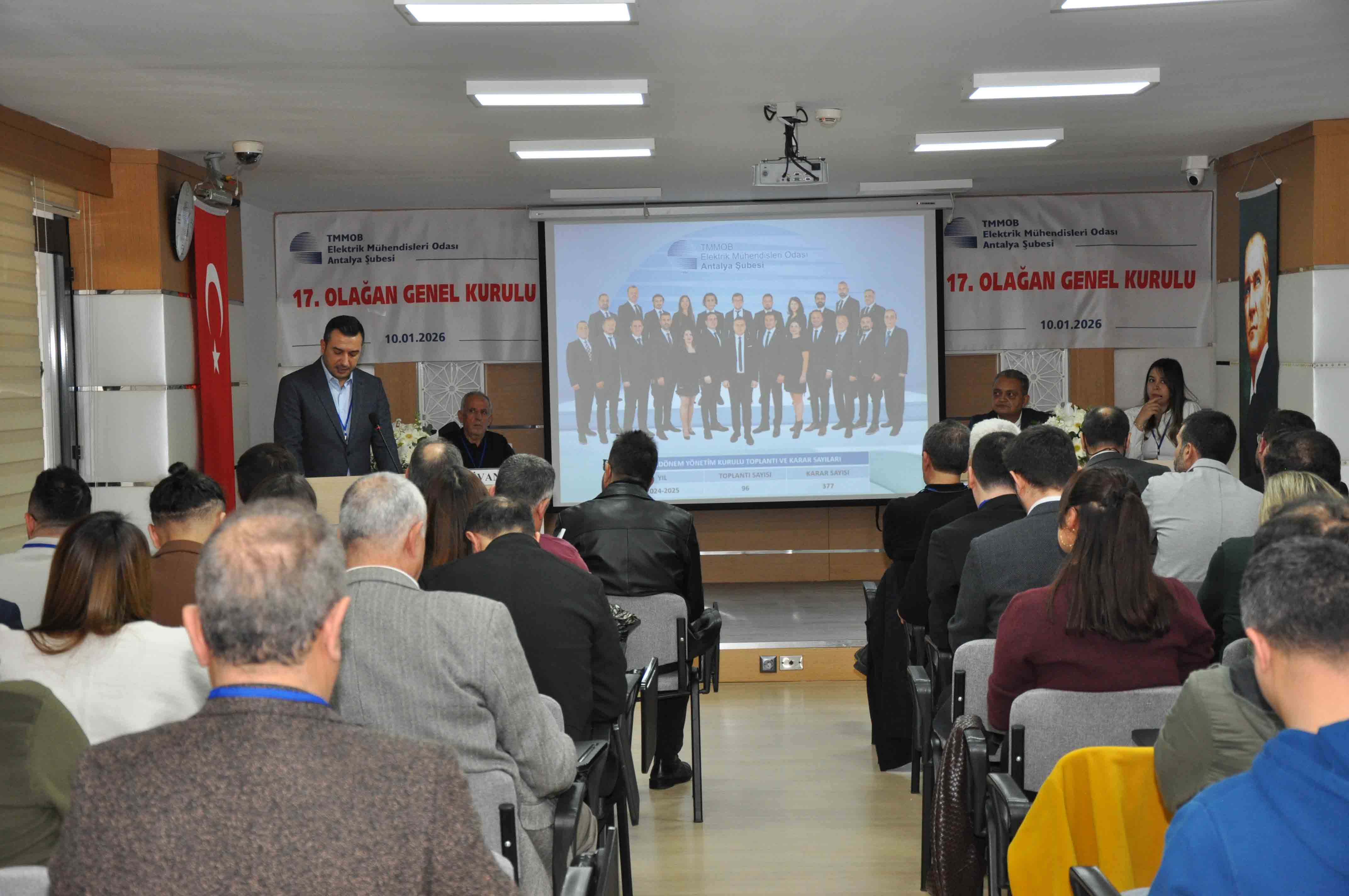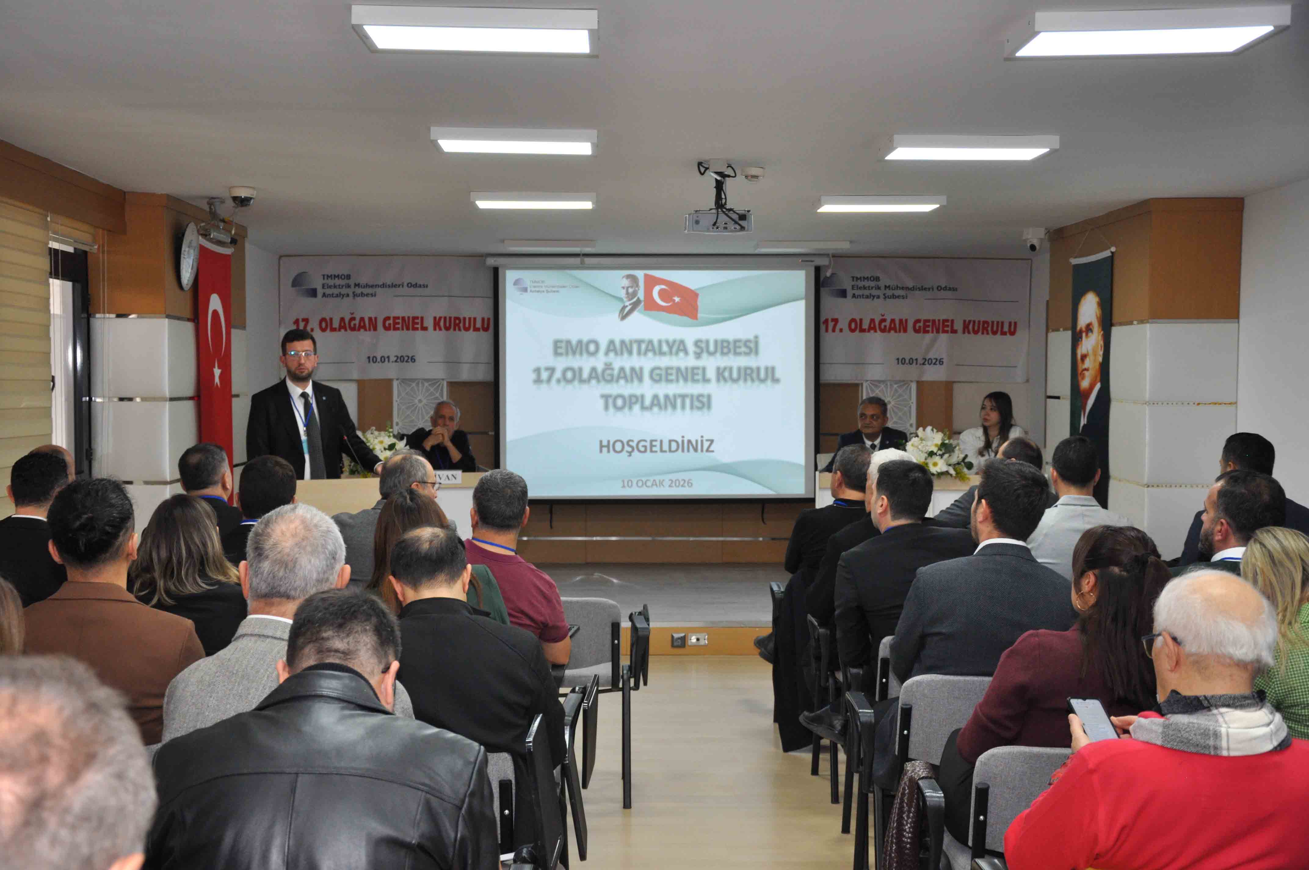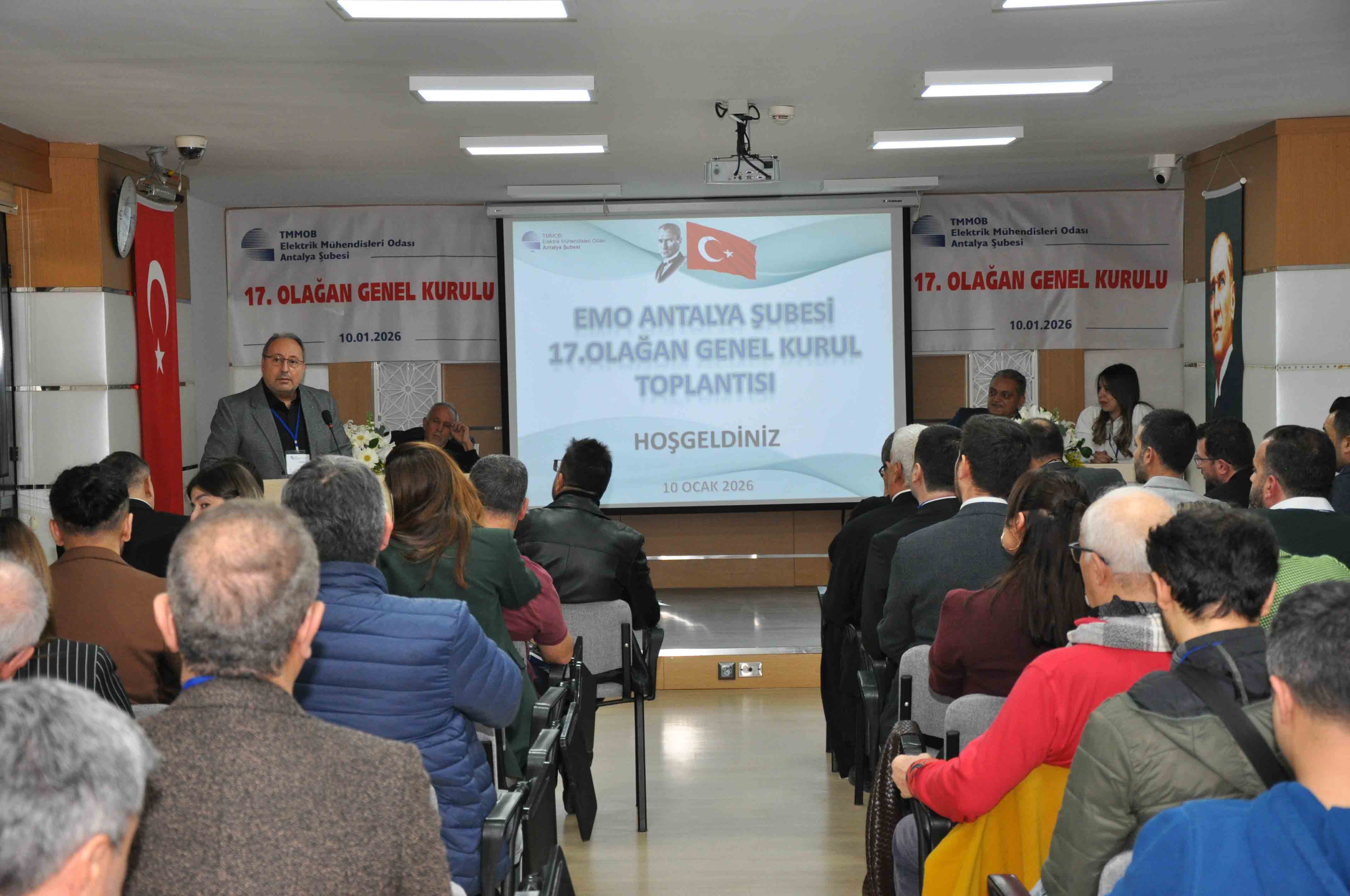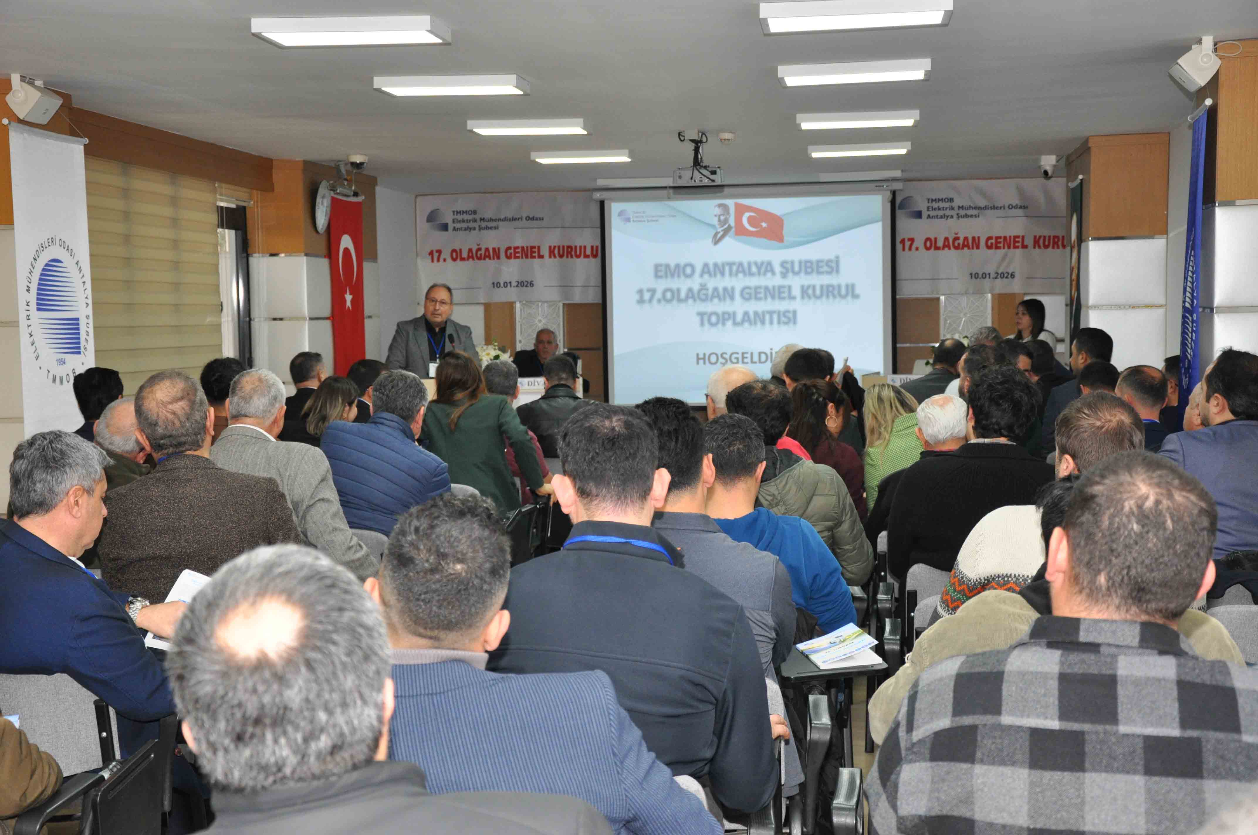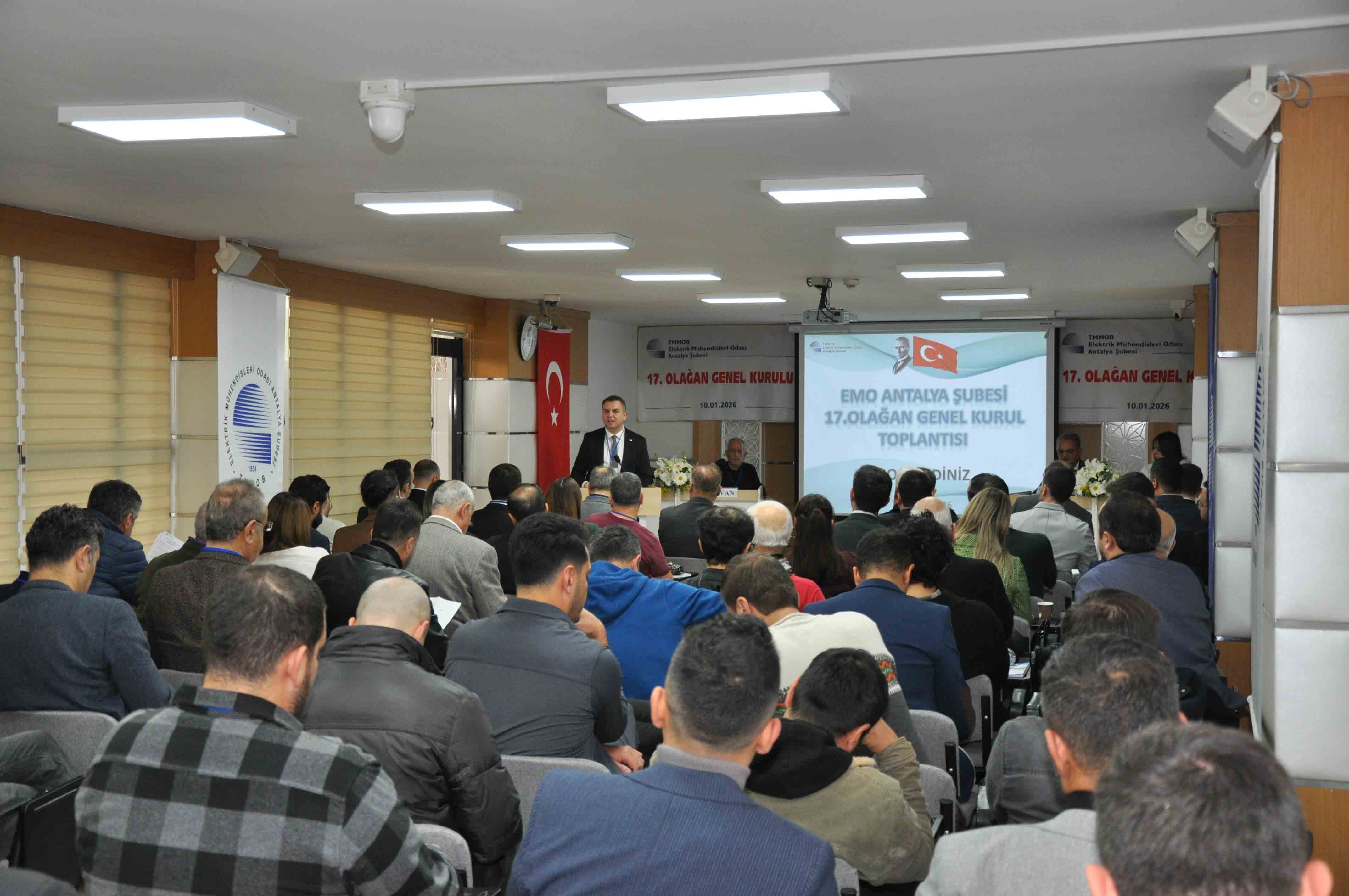 Elektrik Mühendisleri Odası (EMO) Antalya Şubesi’nin 17. Olağan Genel Kurulu, 10 Ocak 2026 Cumartesi günü Şube Hizmet Binası’nda 132 katılımcı ile gerçekleşti. Genel Kurulun ardından 11 Ocak’ta gerçekleştirilen seçimlerde Şaban Tat’ın başkanlığındaki liste kazandı.17. Olağan Genel Kurul’a ve seçime ilişkin detaylara yazımızın devamında ulaşabilirsiniz.