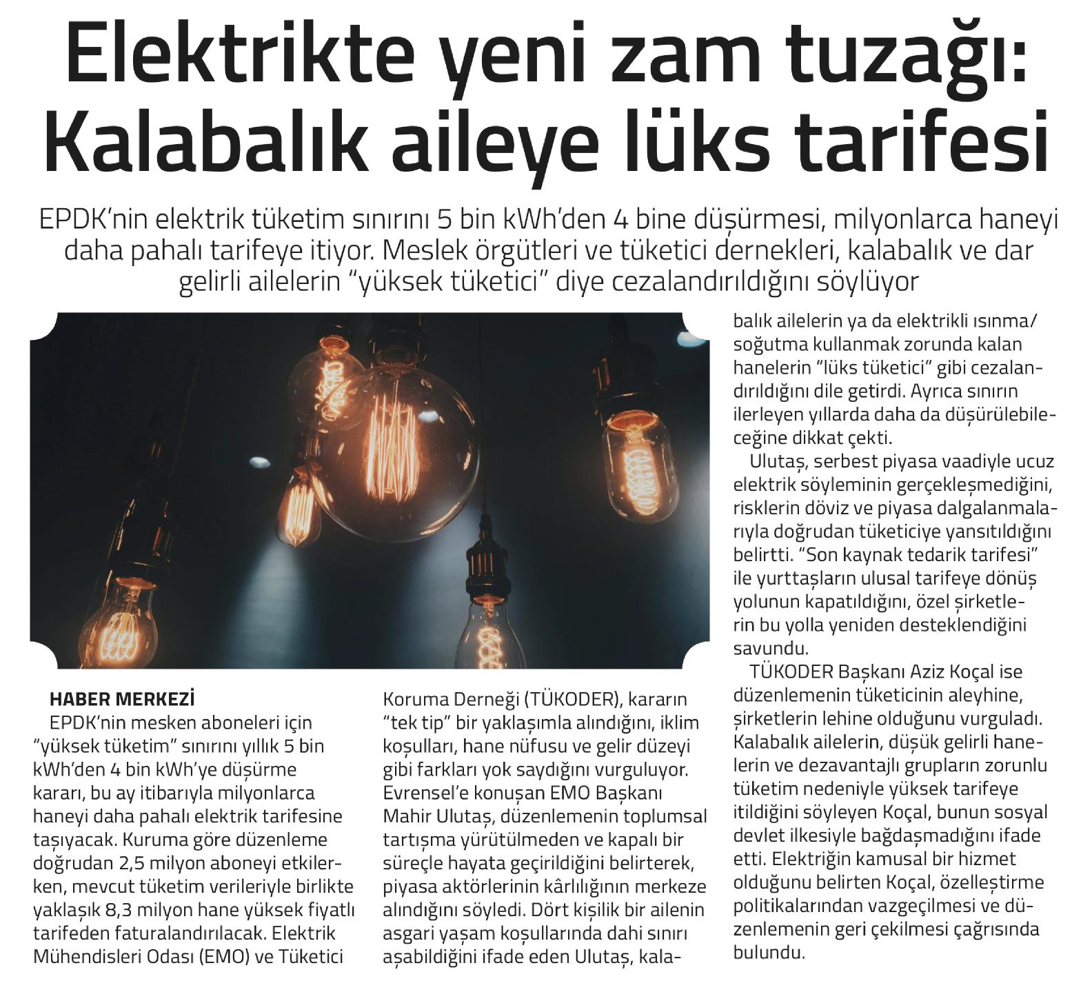 EPDK‘nin mesken aboneleri için "yüksek tüketim" sınırını yıllık 5 bin kVVh‘den k bin kVVh‘ye düşürme kararı, bu ay itibarıyla milyonlarca haneyi daha pahalı elektrik tarifesine taşıyacak. Kuruma göre düzenleme doğrudan 2,5 milyon aboneyi etkilerken, mevcut tüketim verileriyle birlikte yaklaşık 8,3 milyon hane yüksek fiyatlı tarifeden faturalandırılacak. Elektrik Mühendisleri Odası (EMO) ve Tüketici Koruma Derneği (TÜKODER), kararın "tek tip" bir yaklaşımla alındığını, iklim koşulları, hane nüfusu ve gelir düzeyi gibi farkları yok saydığını vurguluyor. Evrensel‘e konuşan EMO Başkanı Mahir Ulutaş, düzenlemenin toplumsal tartışma yürütülmeden ve kapalı bir süreçle hayata geçirildiğini belirterek, piyasa aktörlerinin kârlılığının merkeze alındığını söyledi. Dört kişilik bir ailenin asgari yaşam koşullarında dahi sınırı aşabildiğini ifade eden Ulutaş, kalabalık ailelerin ya da elektrikli ısınma/soğutma kullanmak zorunda kalan hanelerin "lüks tüketici" gibi cezalandırıldığını dile getirdi. Ayrıca sınırın ilerleyen yıllarda daha da düşürülebileceğine dikkat çekti. Ulutaş, serbest piyasa vaadiyle ucuz elektrik söyleminin gerçekleşmediğini, risklerin döviz ve piyasa dalgalanmalarıyla doğrudan tüketiciye yansıtıldığını belirtti. "Son kaynak tedarik tarifesi" ile yurttaşların ulusal tarifeye dönüş yolunun kapatıldığını, özel şirketlerin bu yolla yeniden desteklendiğini savundu. TÜKODER Başkanı Aziz Kocal ise düzenlemenin tüketicinin aleyhine, şirketlerin lehine olduğunu vurguladı. Kalabalık ailelerin, düşük gelirli hanelerin ve dezavantajlı grupların zorunlu tüketim nedeniyle yüksek tarifeye itildiğini söyleyen Kocal, bunun sosyal devlet ilkesiyle bağdaşmadığını ifade etti. Elektriğin kamusal bir hizmet olduğunu belirten Kocal, özelleştirme politikalarından vazgeçilmesi ve düzenlemenin geri çekilmesi çağrısında bulundu.