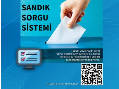 SANDIK SORGU SİSTEMİ EMO İzmir Şubesi 36. Olağan Genel Kurulu kapsamında 1 Şubat 2026 Pazar günü gerçekleştirilecek seçimlerde, hangi sandıkta oy kullanacağınızı ve sıra numaranızı öğrenebilirsiniz.