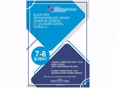 ELEKTRİK MÜHENDİSLERİ ODASI SAMSUN ŞUBESİ 21.OLAĞAN GENEL KURULU DÜZENLENİYOR.(Detaylara yazımızın devamından ulaşabilirsiniz.)