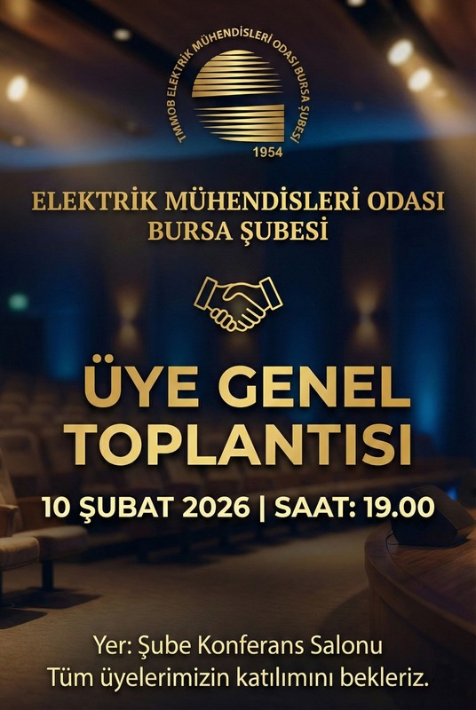ÜYE GENEL TOPLANTISI Tarih : 10 Şubat 2026 Salı Saat : 19.00 Yer : EMO Bursa Şubesi Konferans Salonu Odunluk Mah. Akademi Cd. No:8 BAOB Yerleşkesi Nilüfer/ Bursa 02244511212 bursa@emo.org.tr