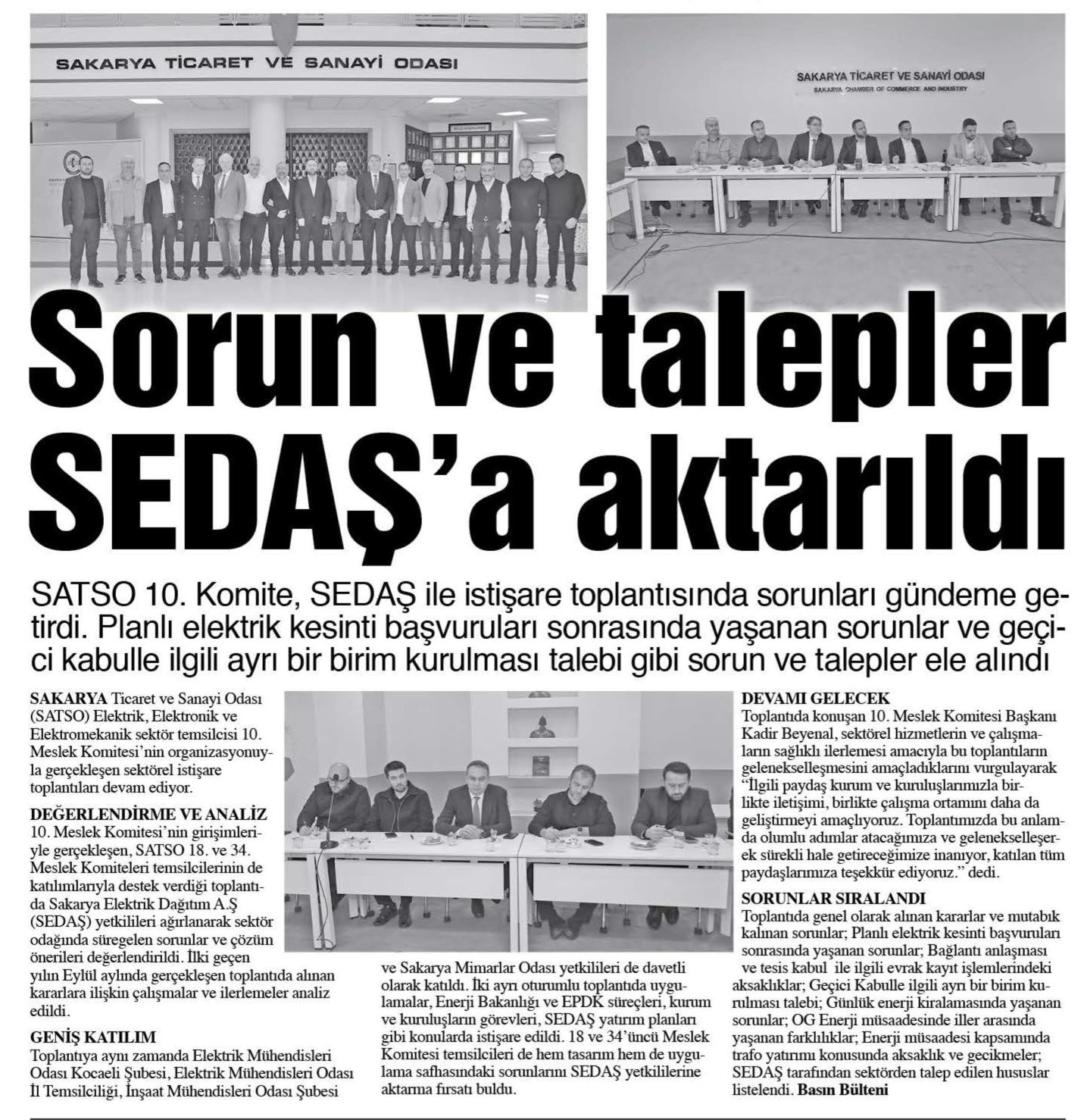 SATSO`DA SEDAŞ`A SORUNLAR AKTARILDI