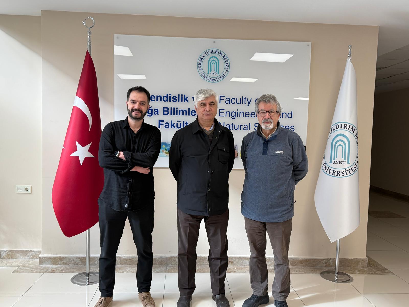 EMO Yönetim Kurulu Üyesi Ramazan Pektaş, Ankara Yıldırım Beyazıt Üniversitesi (AYBÜ) Elektrik Elektronik Mühendisliği Bölümü Başkanı Prof. Dr. Hüseyin Canbolat ve Dr. Öğretim Üyesi Yunus Yalman`ı 3 Şubat 2026 Salı günü üniversitede ziyaret etti.