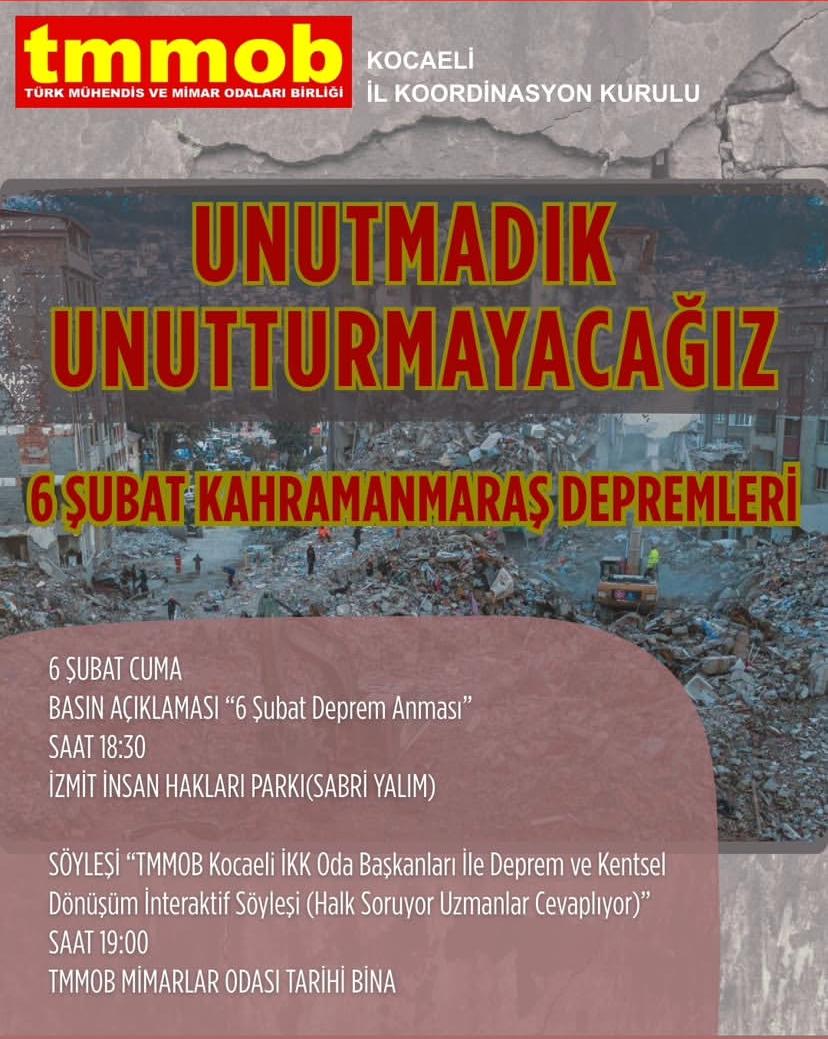 BASIN AÇIKLAMASI: `6 ŞUBAT DEPREM ANMASI`