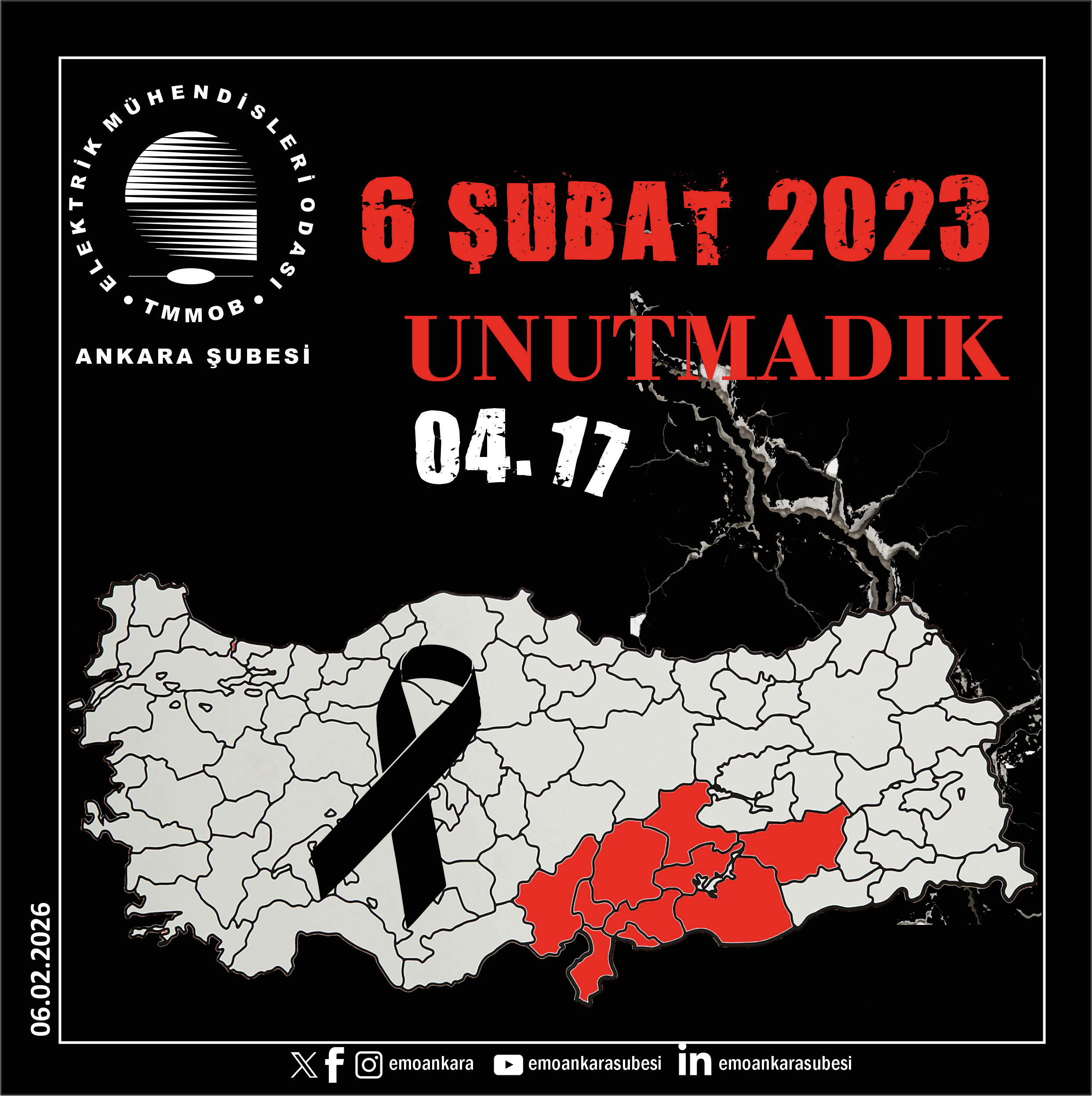 6 Şubat 2023`te meydana gelen büyük deprem felaketinde hayatını kaybeden binlerce yurttaşımızı rahmetle anıyor, yakınlarını kaybedenlere başsağlığı ve sabır diliyoruz.