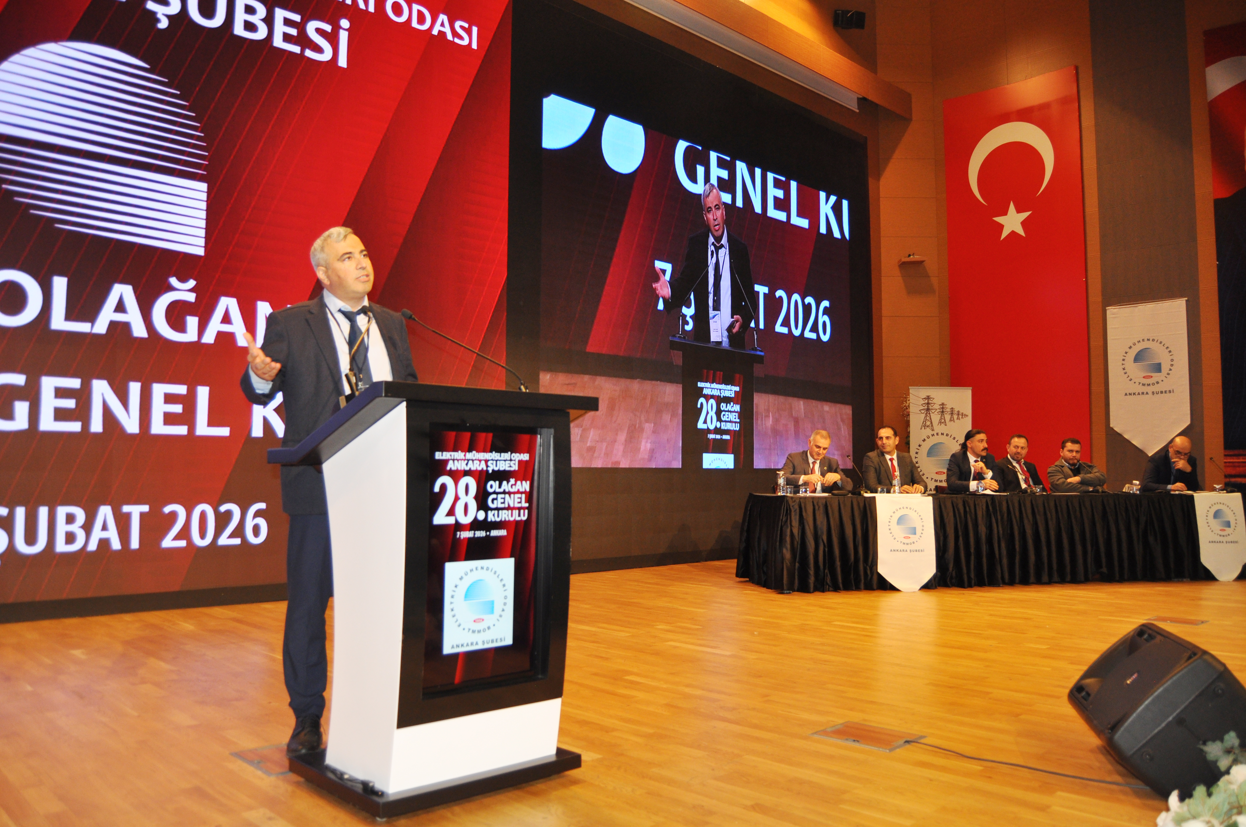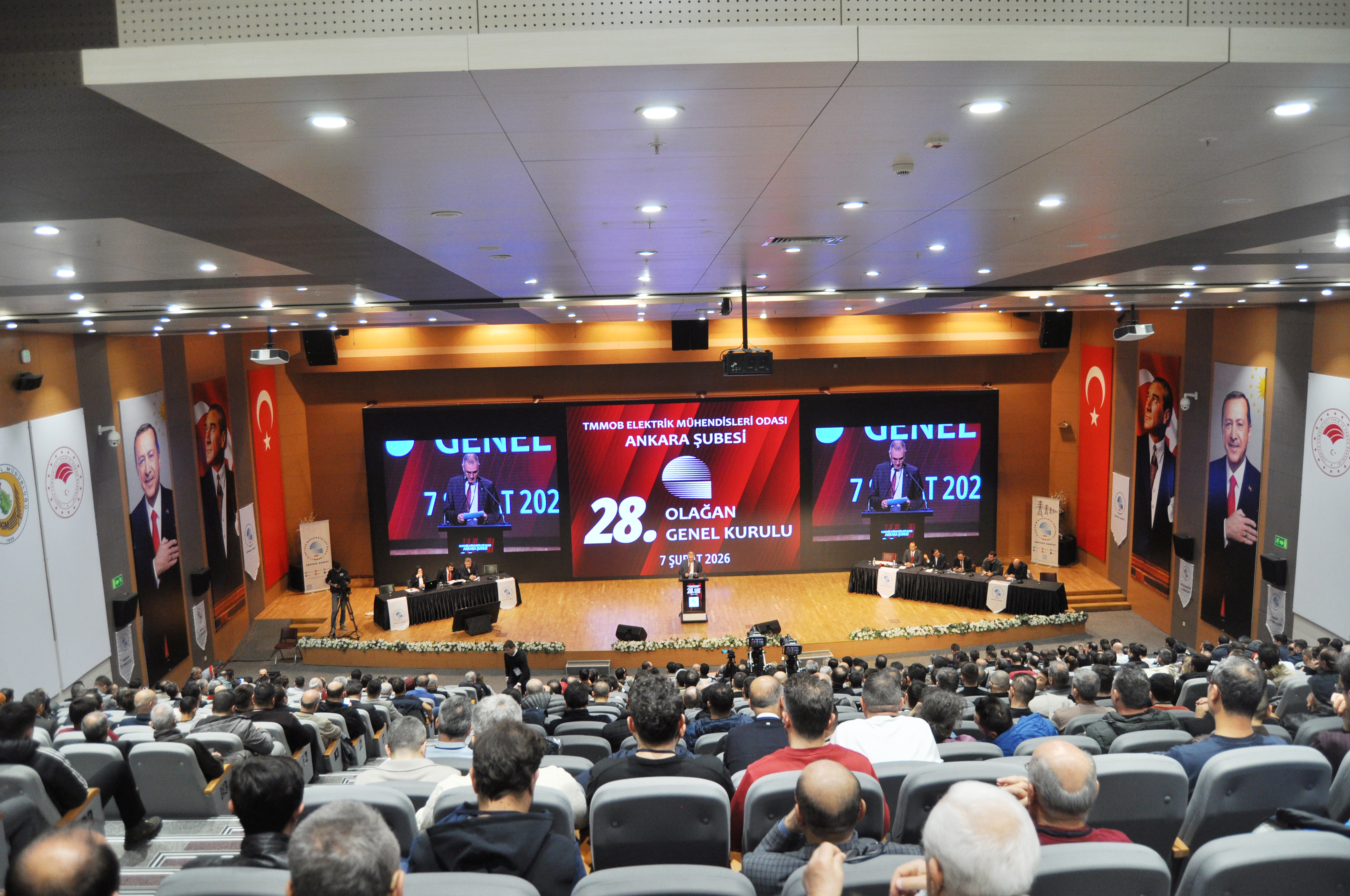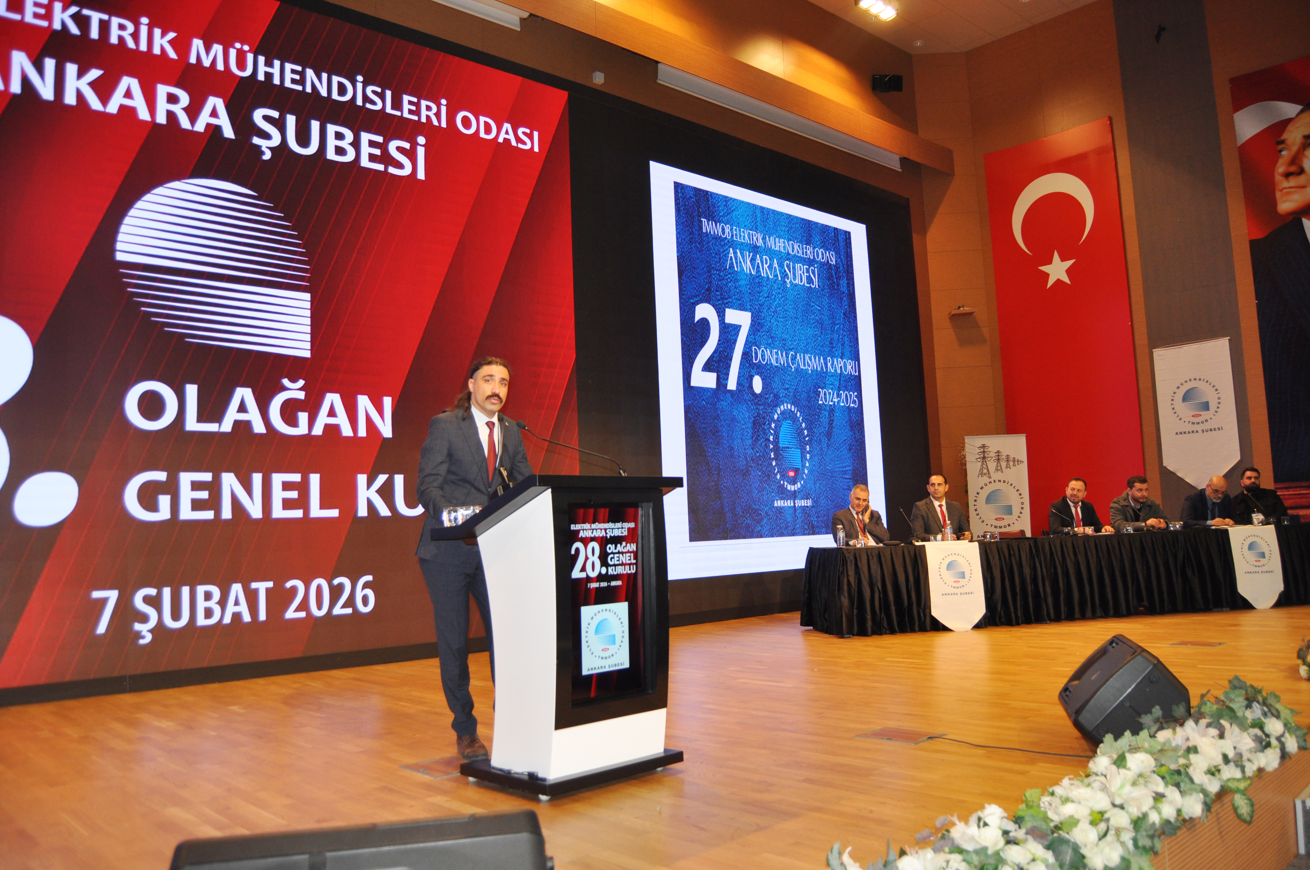 Orman Genel Müdürlüğü`nde, 7 Şubat 2026 tarihinde düzenlenen Genel Kurul, üyelerimiz Lütfi Can Başaran, Mahmut Görük, Perihan Saraç ve Salih Berkan Ateş`in divana seçilmesi ile başladı. Divan seçiminden sonra yapılan saygı duruşu ve İstiklal Marşı`nın ardından, EMO Ankara Şube 27. Dönem Yönetim Kurulu Başkanı Cevdet aslan açılış konuşmasını gerçekleştirdi. Daha sonra sırasıyla EMO Denetleme Kurulu Başkanı Naci Basmacı, Dünya Enerji Komisyonu Türkiye Yönetim Kurulu Üyesi Barış Şanlı ve EMO Genel Merkezi Yönetim Kurulu Başkanı Mahir Ulutaş açılış konuşmalarını gerçekleştirdi. Genel Kurul`da EMO Genel Merkezi Yönetim Kurulu Üyesi Ender Kelleci gözlemci olarak yer aldı. Gündem doğrultusunda ilerleyen Genel Kurul seçimlere katılacak listelerin divana sunulmasının ardından gelecek dönem mali bütçesinin oylanması ve dilek ve temenniler ile son buldu. Gündemin 18. Maddesi olan seçimler ise 8 Şubat 2026 tarihinde Ankara Atatürk Lisesi`nde gerçekleşti. Seçimlere "Demokrat Mühendisler", "Frekans Mühendisler" ve "Cumhuriyetçi İlkeli Mühendisler" adlı 3 ayrı liste girdi. Seçim sonuçlarına göre EMO Ankara Şubesi yeni Yönetim Kurulu Demokrat Mühendisler listesinden Ramazan Pektaş, Erol Akyüzlü, Meltem Yılmaz, Musa Demir, Tufan Teziş, Ali Yılmaz ve Frekans Mühendisler listesinden Engin Pekyılmaz`dan oluştu. Demokrat Mühendisler listesinden Onur Koçak, Yaşanur Kaya, Hüseyin Mert Külahçı, Nesrin Çelik, Sümeyye Özdemir, Mehmet Baki ile Frekans Mühendisler listesinden Emre Şener Yedek Yönetim Kurulu Üyesi olarak belirlendiler. Şube asıl denetçileri Demokrat Mühendisler listesinden Erbil Yünür, Emin Yıldırım ve Bekir Sami Tekin olurken; yedek denetçiler Demokrat Mühendisler listesinden Mahmut Bacı, Barış Çelik ve Abdullah Murat Ortaç olarak belirlendi. Şube delegelerinin tamamı da Demokrat Mühendisler listesinden seçildi.