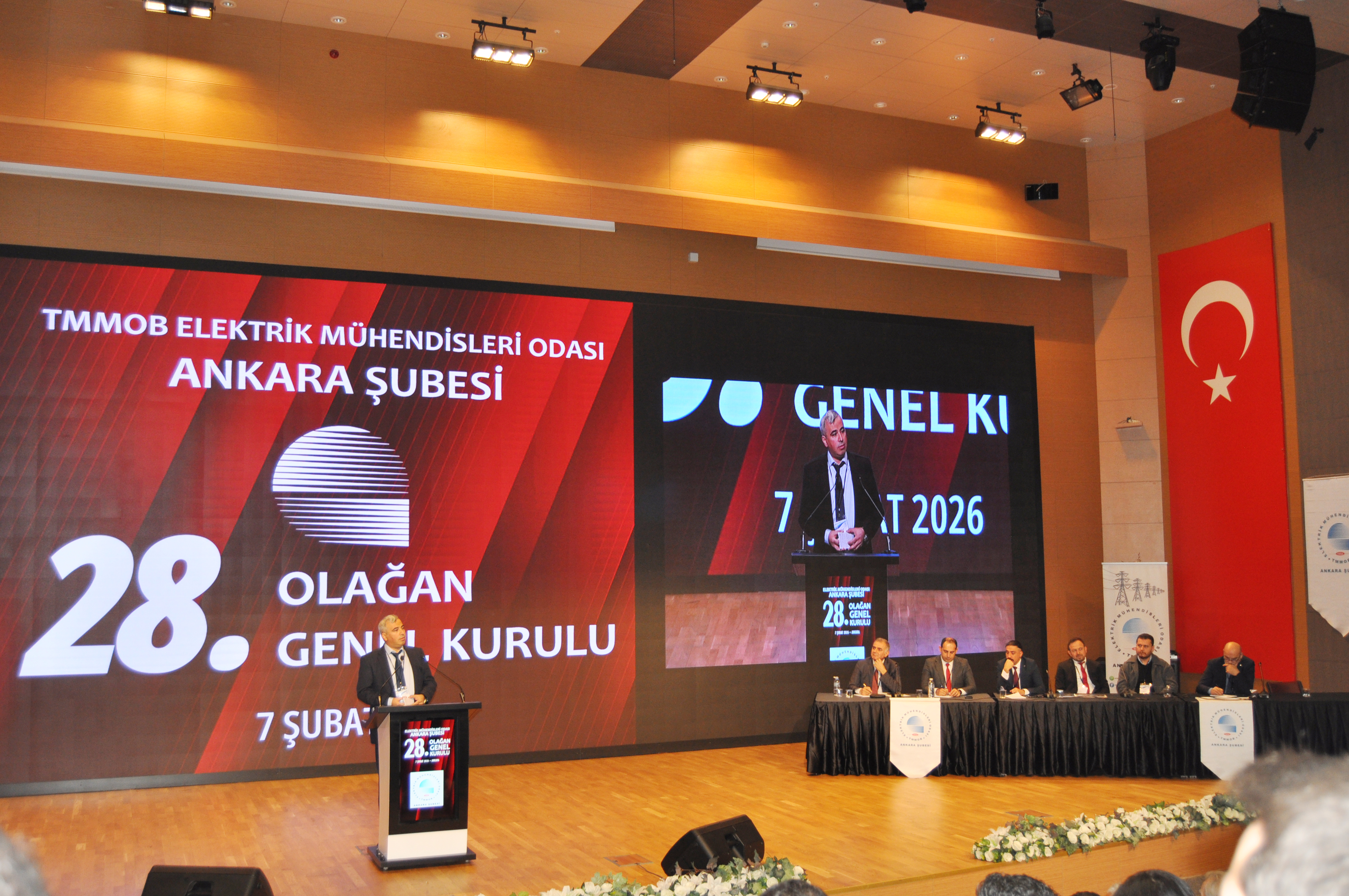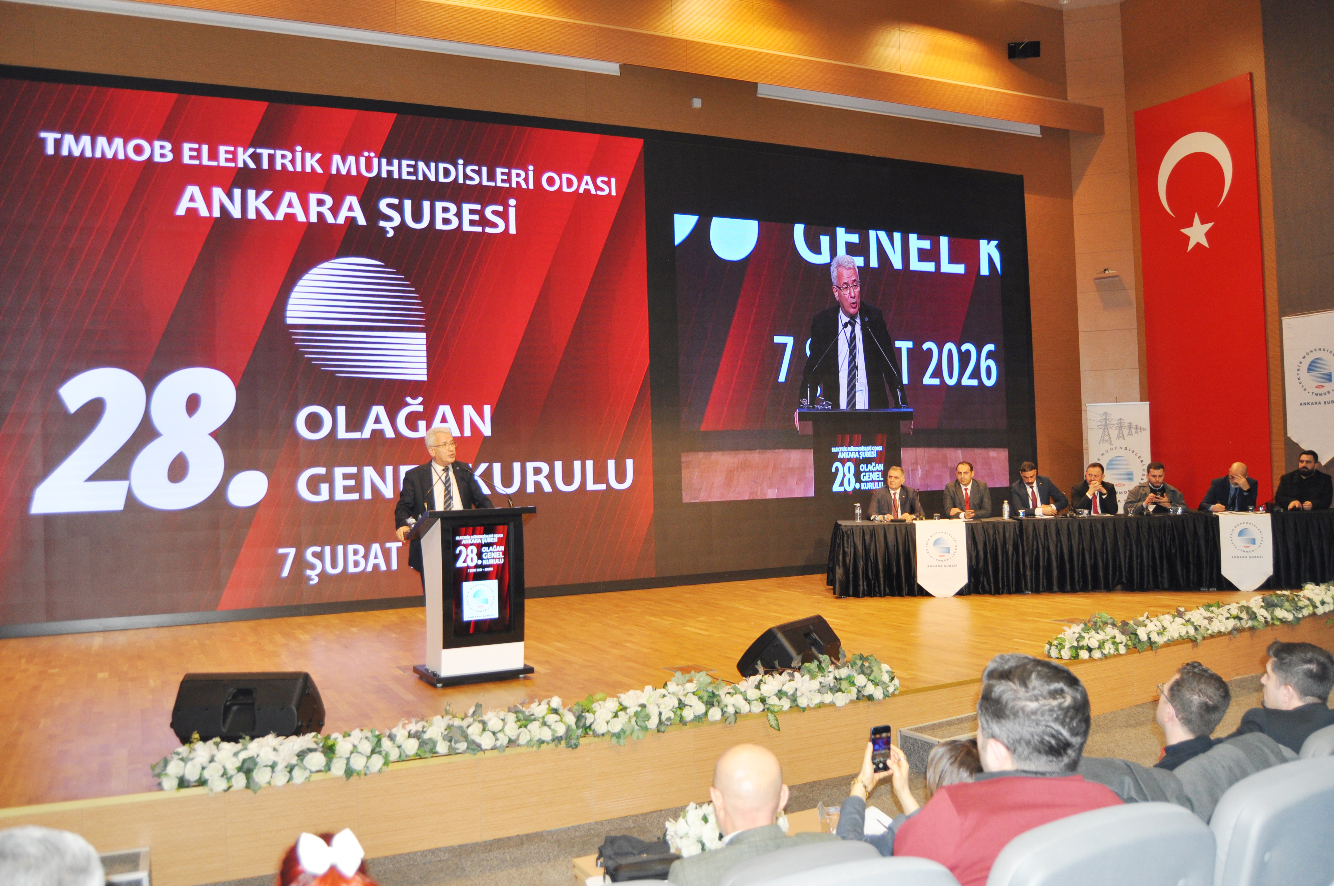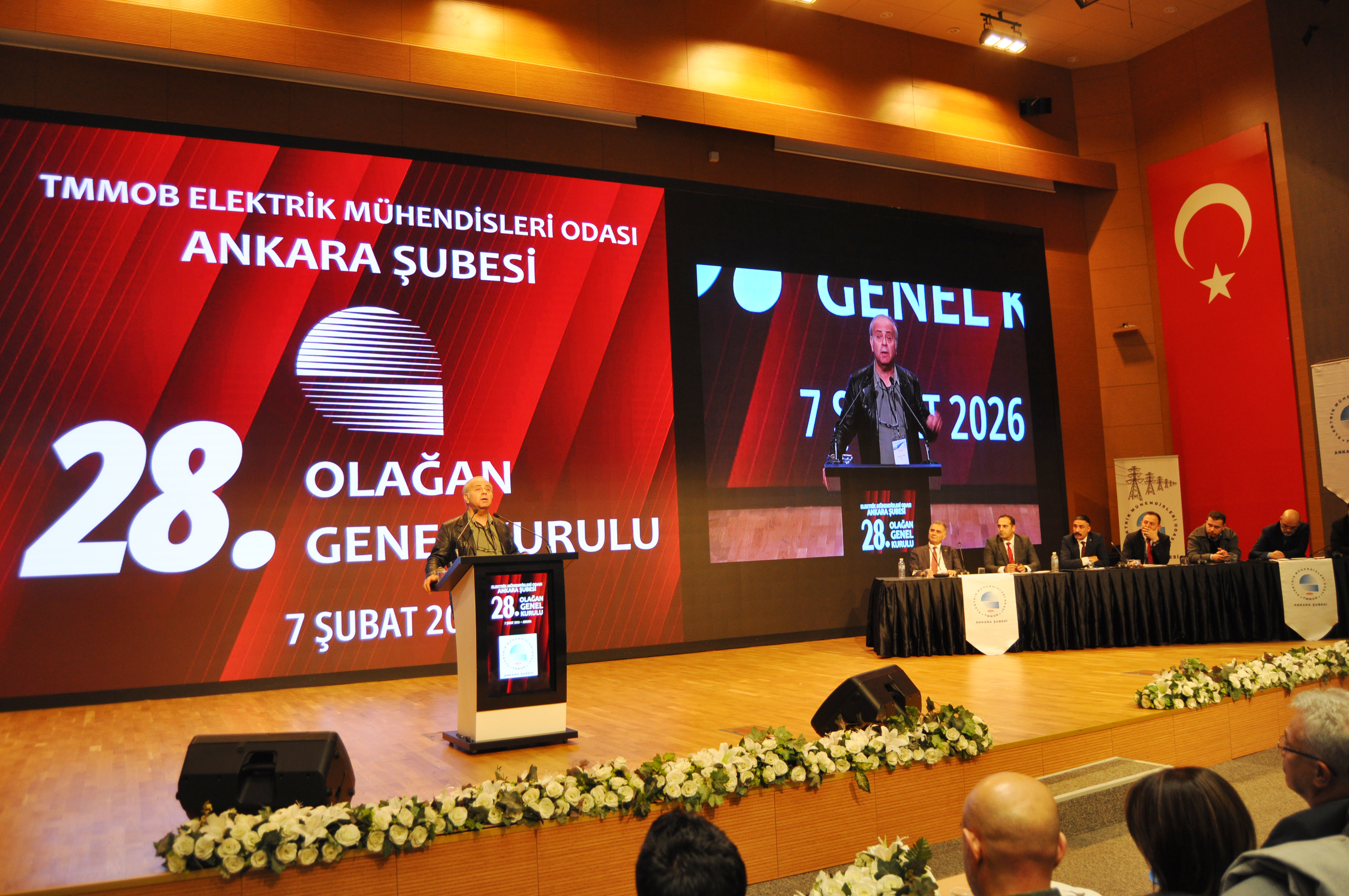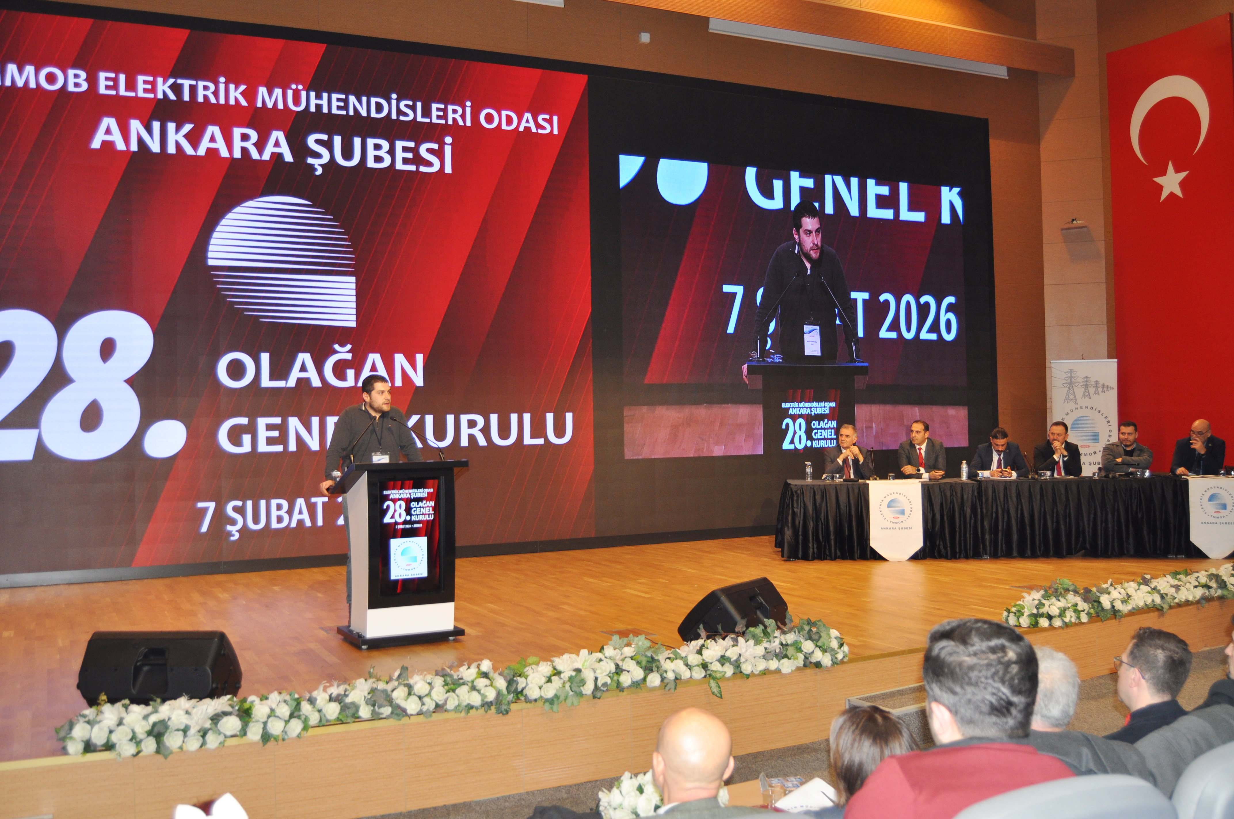 Orman Genel Müdürlüğü`nde, 7 Şubat 2026 tarihinde düzenlenen Genel Kurul, üyelerimiz Lütfi Can Başaran, Mahmut Görük, Perihan Saraç ve Salih Berkan Ateş`in divana seçilmesi ile başladı. Divan seçiminden sonra yapılan saygı duruşu ve İstiklal Marşı`nın ardından, EMO Ankara Şube 27. Dönem Yönetim Kurulu Başkanı Cevdet aslan açılış konuşmasını gerçekleştirdi. Daha sonra sırasıyla EMO Denetleme Kurulu Başkanı Naci Basmacı, Dünya Enerji Komisyonu Türkiye Yönetim Kurulu Üyesi Barış Şanlı ve EMO Genel Merkezi Yönetim Kurulu Başkanı Mahir Ulutaş açılış konuşmalarını gerçekleştirdi. Genel Kurul`da EMO Genel Merkezi Yönetim Kurulu Üyesi Ender Kelleci gözlemci olarak yer aldı. Gündem doğrultusunda ilerleyen Genel Kurul seçimlere katılacak listelerin divana sunulmasının ardından gelecek dönem mali bütçesinin oylanması ve dilek ve temenniler ile son buldu. Gündemin 18. Maddesi olan seçimler ise 8 Şubat 2026 tarihinde Ankara Atatürk Lisesi`nde gerçekleşti. Seçimlere "Demokrat Mühendisler", "Frekans Mühendisler" ve "Cumhuriyetçi İlkeli Mühendisler" adlı 3 ayrı liste girdi. Seçim sonuçlarına göre EMO Ankara Şubesi yeni Yönetim Kurulu Demokrat Mühendisler listesinden Ramazan Pektaş, Erol Akyüzlü, Meltem Yılmaz, Musa Demir, Tufan Teziş, Ali Yılmaz ve Frekans Mühendisler listesinden Engin Pekyılmaz`dan oluştu. Demokrat Mühendisler listesinden Onur Koçak, Yaşanur Kaya, Hüseyin Mert Külahçı, Nesrin Çelik, Sümeyye Özdemir, Mehmet Baki ile Frekans Mühendisler listesinden Emre Şener Yedek Yönetim Kurulu Üyesi olarak belirlendiler. Şube asıl denetçileri Demokrat Mühendisler listesinden Erbil Yünür, Emin Yıldırım ve Bekir Sami Tekin olurken; yedek denetçiler Demokrat Mühendisler listesinden Mahmut Bacı, Barış Çelik ve Abdullah Murat Ortaç olarak belirlendi. Şube delegelerinin tamamı da Demokrat Mühendisler listesinden seçildi.
