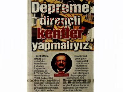 İnşaatlar için uygulama şartnamesi yazılmalı! Kahramanmaraş merkezli 6 Şubat depremlerinin 3. yılında iş dünyasından açıklamalar geldi.