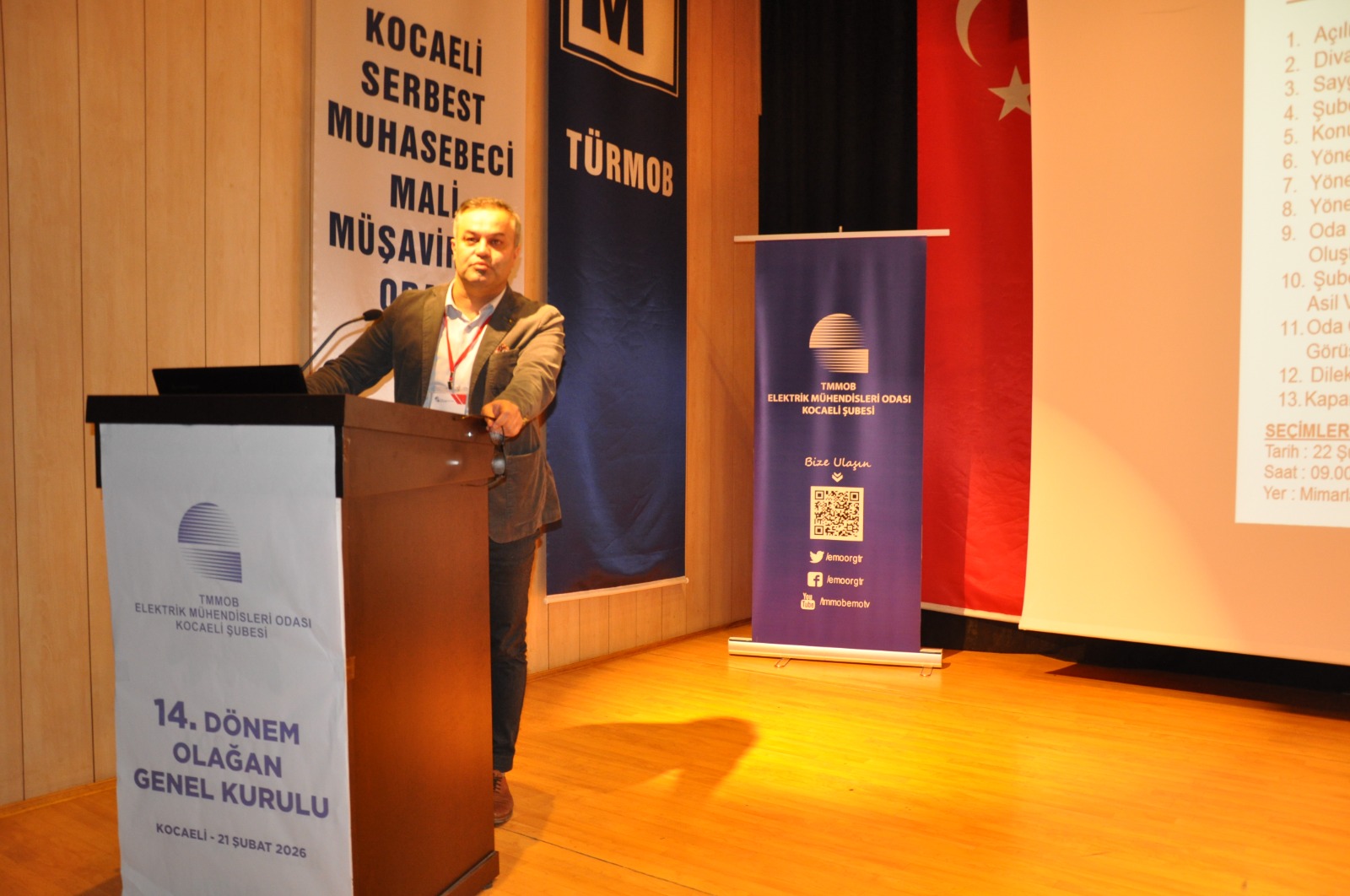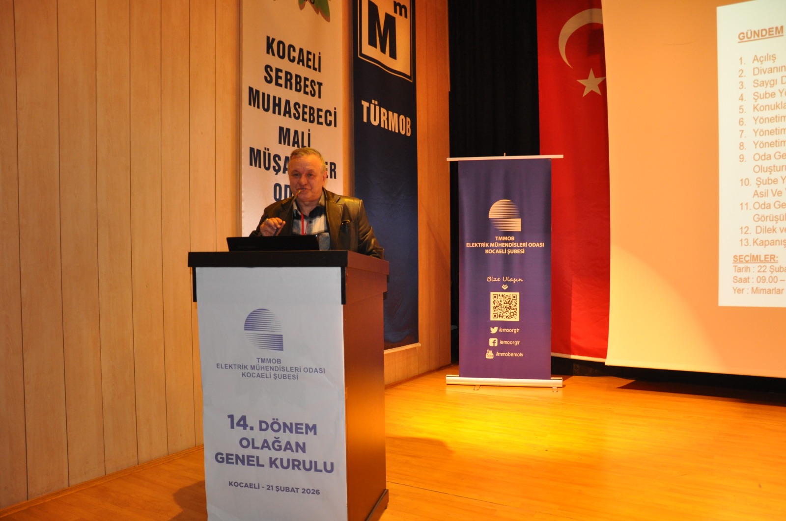 EMO Kocaeli Şube 14. Dönem Genel Kurulu ve Seçimi, 21-22 Şubat 2026 tarihleri arasında gerçekleştirildi. İlk gün Kocaeli Serbest Muhasebeciler Mali Müşavirler Odasında Genel Kurul Toplantısı, ikinci gün Mimarlar Odası Kocaeli Şubesi Tarihi Binada EMO Kocaeli Şube Yönetim Kurulu için yapılan seçimlerle tamamlandı.