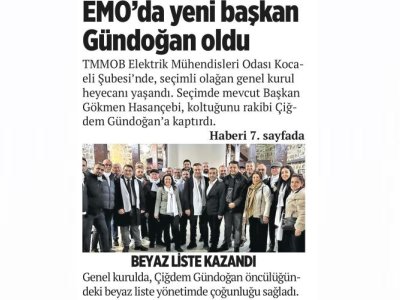 EMO`DA YENİ BAŞKAN GÜNDOĞAN OLDU