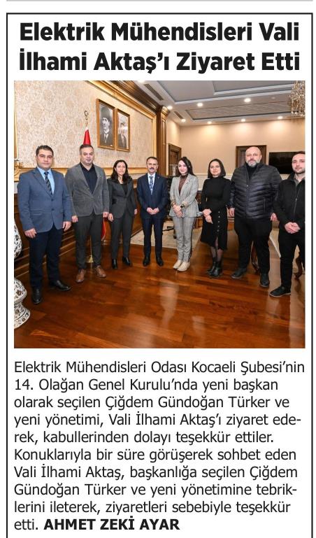ELEKTRİK MÜHENDİSLERİ VALİ İLHAMİ AKTAŞ`I ZİYARET ETTİ