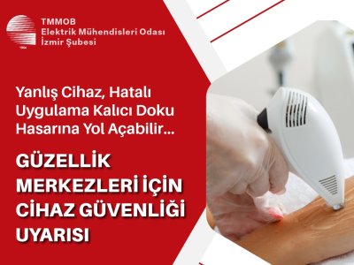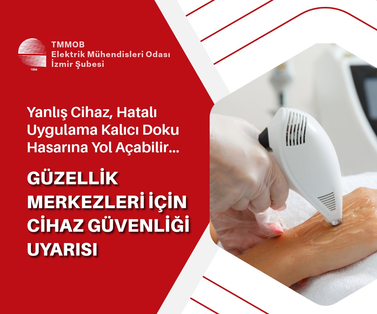 ELEKTRİK MÜHENDİSLERİ ODASI İZMİR ŞUBESİ BASIN AÇIKLAMASI Yanlış Cihaz, Hatalı Uygulama Kalıcı Doku Hasarına Yol Açabilir… GÜZELLİK MERKEZLERİ İÇİN CİHAZ GÜVENLİĞİ UYARISI