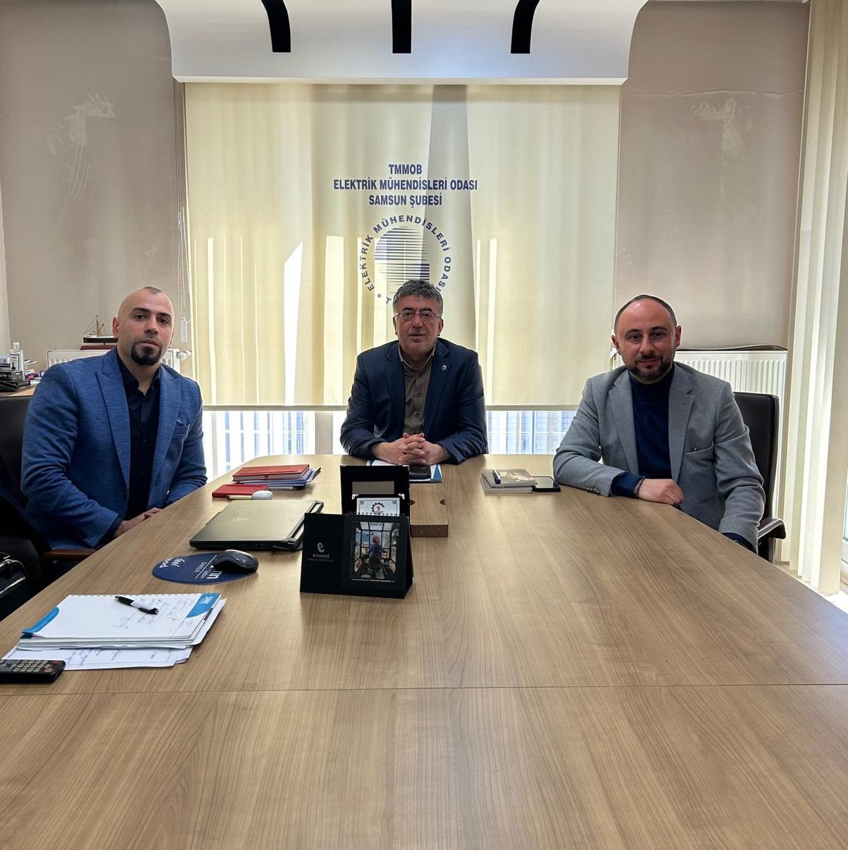 Elektrik Mühendisleri Odası Samsun şubemize 11 Mart 2026 tarihinde Erse Kablo San. ve Tic. A.Ş. Karadeniz Bölge Temsilcisi Sn. Orçun TURGUT ziyarette bulundu. Yönetim Kurulu Başkan Yardımcımız Sn. Oğuzhan KALKAN’ın da bulunduğu ziyarette; Yönetim Kurulu Başkanımız Adnan KORKMAZ ile, sektörün güncel gelişmeleri, özellikle firmanın faaliyet alanı olan yangına dayanıklı kablolar ve haberleşme altyapıları üzerine verimli bir sohbet gerçekleştirdiler.