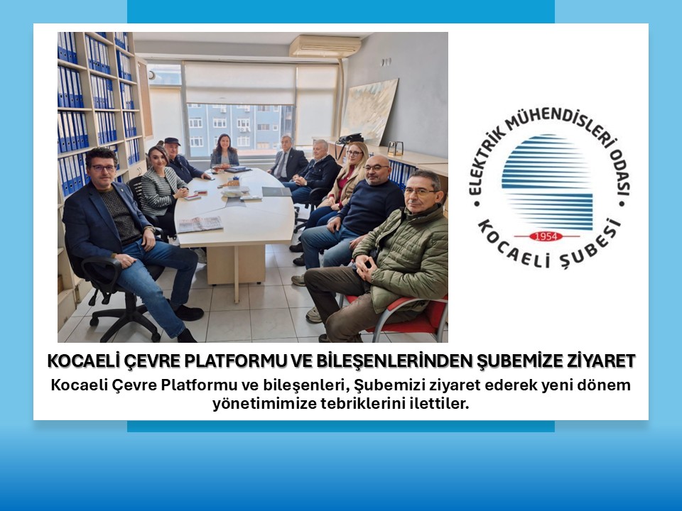 13 Mart 2026 Cuma günü Kocaeli Çevre Platformu ve bileşenleri, Elektrik Mühendisleri Odası Kocaeli Şubemizi ziyaret ederek yeni dönem yönetimimize tebriklerini ilettiler. Nazik ziyaretleri ve dayanışma mesajları için kendilerine teşekkür ediyoruz.