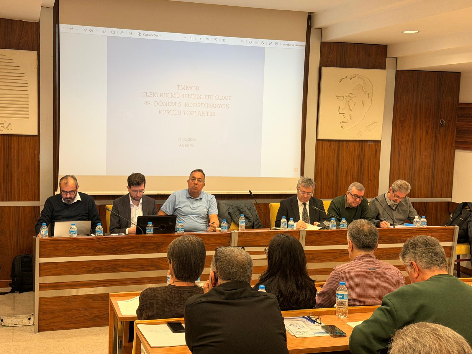 Elektrik Mühendisleri Odası`nın 49. Dönem 5. Koordinasyon Kurulu toplantısı, 14 Mart 2026 Cumartesi günü Ankara`da yoğun katılımla gerçekleşti. 49. Dönemin son, yeni seçilen Şube yönetimlerinin ise ilk etkinliği olma özelliği taşıyan Koordinasyon Kurulu Toplantısı`na Adana, Ankara, Antalya, Bursa, Denizli, Diyarbakır, Eskişehir, Kocaeli, İstanbul, İzmir, Mersin, Samsun ve Trabzon Şubelerinden gelen yöneticiler katıldılar.