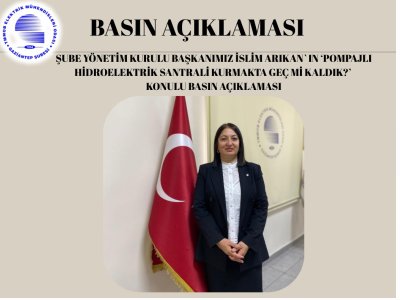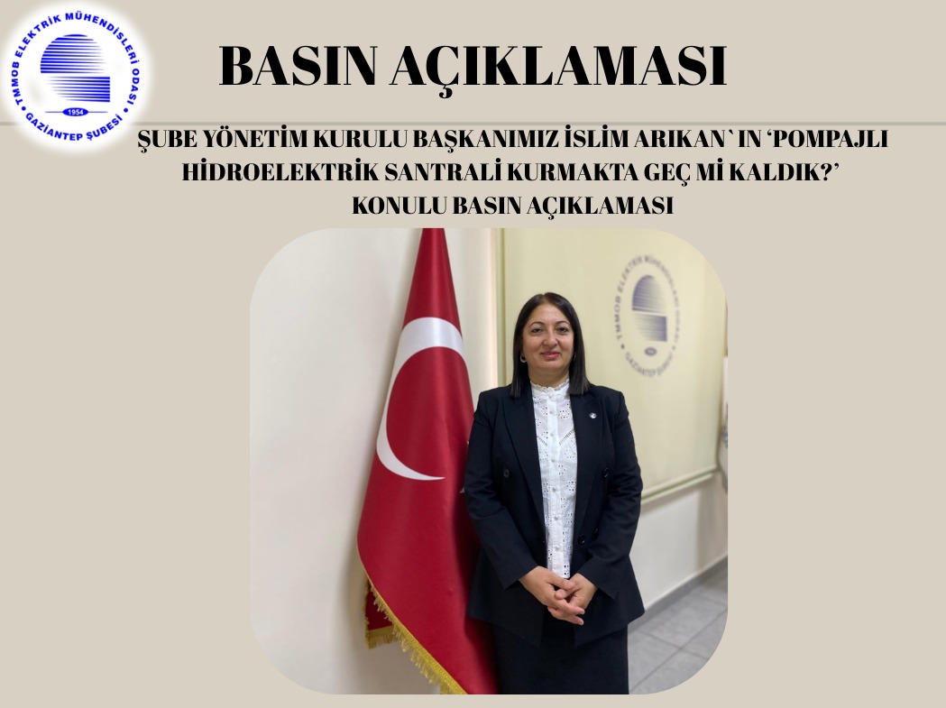 Şube Yönetim Kurulu Başkanımız İslim ARIKAN‘ın `Pompajlı Hidroelektrik Santrali Kurmakta geç mi kaldık? ` konulu basın açıklaması bilginize sunulmuştur