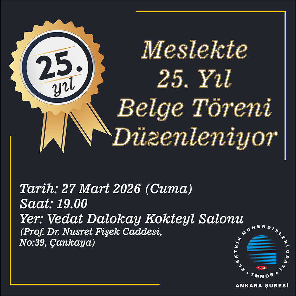 Meslekte 25. Yılını dolduran üyelerimize yönelik olarak 27 Mart 2026 Cuma günü belge töreni düzenleniyor. Vedat Dalokay