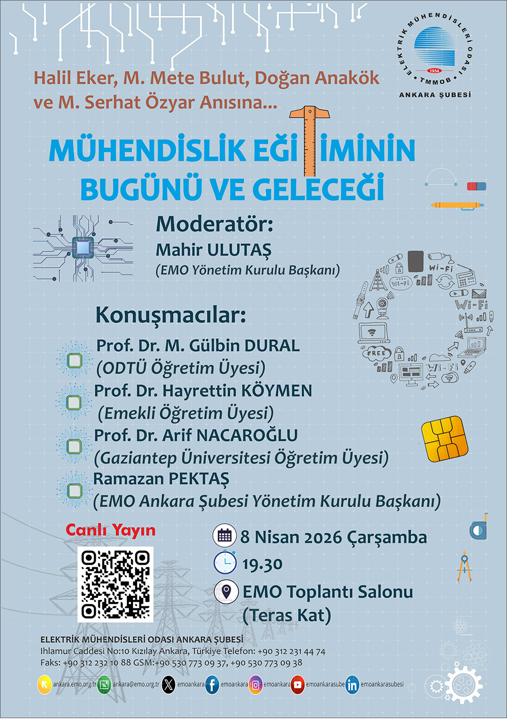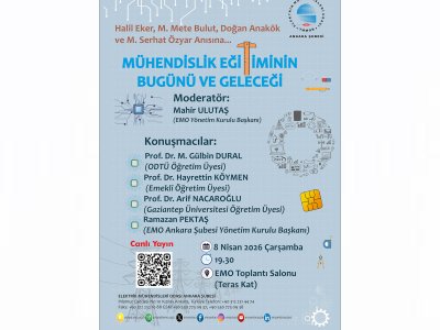 EMO Ankara Şubesi tarafından, 8 Nisan 2026 tarihinde saat: 19.30’da, EMO Toplantı Salonu’nda “Mühendislik Eğitiminin Bugünü Ve Geleceği” başlıklı panel düzenleniyor. Mühendislik eğitimi ile ilgili son gelişmelerin ve eğitimin geleceğinin tartışılacağı panel aynı zamanda EMO-tv’den de canlı olarak yayınlanacaktır.