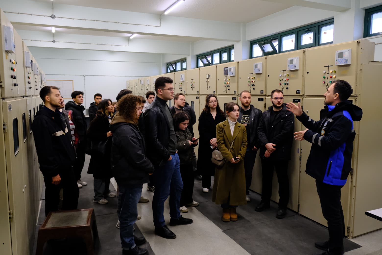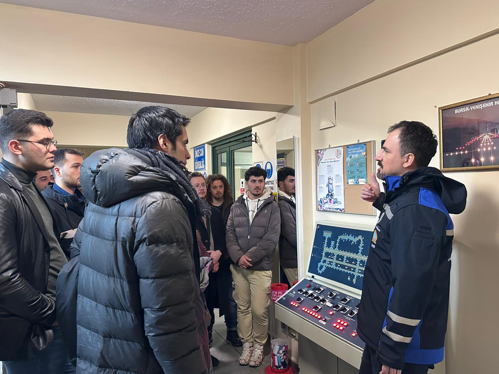 Teknik geziye, EMO Bursa Şubesi Yönetim Kurulu Üyeleri Sedat Gökmenoğlu ve Selda Ekiz de katılım sağladı. Gerçekleştirilen teknik gezide, katılımcı öğrencilere havalimanının OG/AG (Orta Gerilim/Alçak Gerilim) elektrik dağıtım altyapısı, trafo merkezleri, ring şebeke yapısı, yük dağılımı ve selektivite prensipleri hakkında detaylı bilgiler aktarıldı. Kritik tesislerde kesintisiz enerji sürekliliğinin sağlanmasına yönelik olarak kullanılan UPS (Uninterruptible Power Supply) sistemleri, dizel jeneratör grupları, senkronizasyon panoları, ATS (Automatic Transfer Switch) sistemleri ve SCADA tabanlı izleme-kontrol altyapıları yerinde incelenerek uygulama örnekleri üzerinden değerlendirildi. Bununla birlikte havalimanı operasyonlarının emniyeti açısından büyük önem taşıyan pist aydınlatma sistemleri (runway/taxiway lighting), CAT I/II yaklaşma aydınlatmaları, ILS (Instrument Landing System) bileşenleri ve VHF/UHF seyrüsefer haberleşme sistemleri hakkında teknik bilgilendirmeler yapıldı. Gezi kapsamında yapılan sunum ve bilgilendirmeler, havalimanı teknik personeli Elektrik Elektronik Mühendisi Aytaç Sevim, Elektrik Elektronik Mühendisi Aysun Erzen ve Elektrik Elektronik Mühendisi Deniz Bulut tarafından gerçekleştirilmiştir. Bu kapsamda, söz konusu teknik gezinin gerçekleştirilmesine verdikleri destek ve katkılardan dolayı Bursa Yenişehir Havalimanı yönetimine; ayrıca bilgi ve deneyimlerini paylaşan Sayın Aytaç Sevim, Sayın Aysun Erzen ve Sayın Deniz Bulut`a teşekkür ederiz.