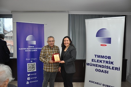 EMO üyeleri Kocaeli Üniversitesi Mühendislik Fakültesi Dr. Öğretim Üyesi Necmi Cemal Özdemir’e meslekte 40. yıl, Hereke Asım Kocabıyık Meslek Yüksekokulu Öğretim Görevlisi Sayın Hüsnü Baysal’a ise meslekte 30. yıl onur plaketi takdim edildi.