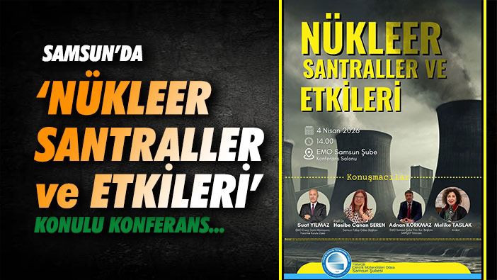 NÜKLEER SANTRALLER VE ETKİLERİ Tarih: 4 Nisan 2026 Saat: 14.00 Yer : EMO Samsun Şube Konferans Salonu Konuşmacılar * Suat YILMAZ(EMO Enerji Daimi Komisyonu Yürütme Kurulu Üyesi) * Prof Dr. Hasibe Canan SEREN(Samsun Tabip Odası Başkanı) * Adnan KORKMAZ(EMO Samsun Şube Yönetim Kurulu Başkanı -- SAMÇEP Sözcüsü) * Melike TASLAK(Avukat)