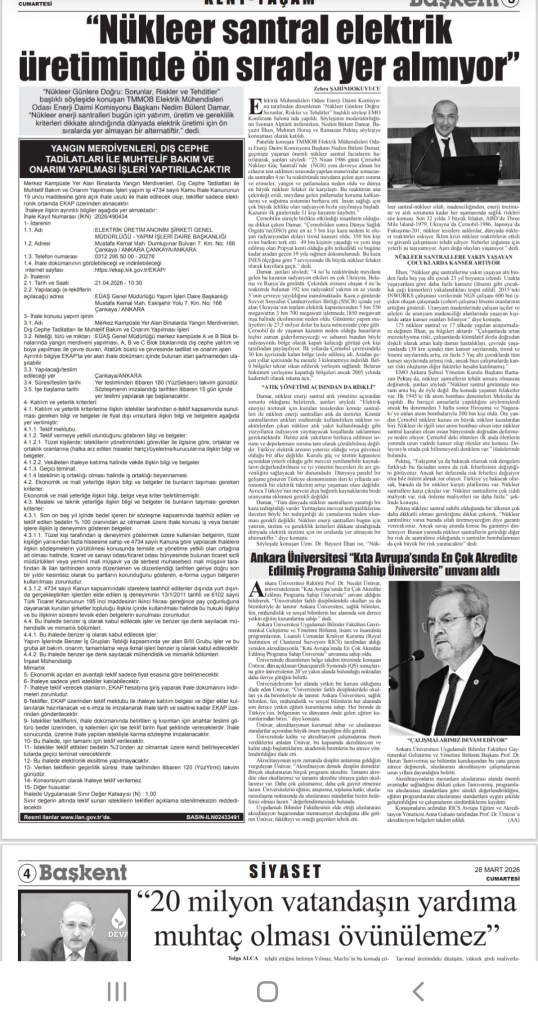 Panelde konuşan TMMOB Elektrik Mühendisleri Odası Enerji Daimi Komisyonu Başkanı Nedim Bülent Damar, geçmişte yaşanan önemli nükleer santral facialarını hatırlatarak, şunları söyledi: "25 Nisan 1986 günü Çernobil Nükleer Güç Santrali`nde (NGS) yeni devreye alınan bir cihazın test edilmesi sırasında yapılan manevralar sonucunda santralin 4 no`lu reaktöründe meydana gelen aşırı ısınma ve erimeler, yangın ve patlamalara neden oldu ve dünya en büyük nükleer felaket ile karşılaştı. Bu reaktörün ana çekirdeği eridi, meydana gelen patlamalar koruma kalkanlarını ve soğutma sistemini berhava etti. İnsan sağlığı için çok büyük tehlike olan radyasyon hızla yayılmaya başladı. Kazanın ilk günlerinde 31 kişi hayatını kaybetti." Çernobil`in süreçle birlikte etkilediği insanların olduğuna dikkat çeken Damar, "Çernobil`den sonra Dünya Sağlık Örgütü`ne(DSO) göre en az 5 bin kişi kaza nedeni le oluşan radyasyondan dolayı tiroit kanseri oldu, 350 bin kişi evini barkını terk etti. 49 bin kişinin yaşadığı ve yeni inşa edilmiş olan Pripyat kenti olduğu gibi terkedildi ve bugüne kadar aradan geçen 39 yıla rağmen dokunulamadı. Bu kaza INES ölçeğine göre 7 seviyesinde ilk büyük nükleer felaket olarak kayıtlara geçti." dedi. Damar, şunları söyledi: "4 no`lu reaktöründe meydana gelen bu kazanın radyasyon etkileri en çok Ukrayna, Belarus ve Rusya`da görüldü. Çekirdek erimesi oluşan 4 no`lu reaktörde bulunan 192 ton radyoaktif yakıtın en az yüzde 5`inin çevreye yayıldığına inanılmaktadır. Kaza o günlerde Sovyet Sosyalist Cumhuriyetleri Birliği (SSCB) içinde yer alan Ukrayna`nın toplam elektrik kapasitesinden 5 bin 550 megavattın 3 bin 700 megavat işletmede,1850 megavat inşa halinde eksilmesine neden oldu. Günümüz yapım maliyetleri ile 27,5 milyar dolar bu kaza neticesinde çöpe gitti. Çernobil`de de yaşanan kazanın neden olduğu hasarların hiçbir zaman giderilemeyeceği ve sahanın bundan böyle radyasyonlu bölge olarak kapalı kalacağı görüşü çok kişi tarafından paylaşılıyor. İlk yıllarda Çernobil çevresindeki 30 km içerisinde kalan bölge izole edilmiş idi. Aradan geçen yıllar içerisinde bu mesafe 3 kilometreye indirildi. Belli bölgeler tekrar iskân edilerek yerleşim sağlandı. Belarus hükümeti yerleşime kapattığı bölgeleri ancak 2005 yılında kademeli olarak iskana açtı." "ATIK YÖNETİMİ AÇISINDAN DA RİSKLİ" Damar, nükleer enerji santral atık yönetimi açısından sorunlu olduğunu belirterek, şunları söyledi: "Elektrik enerjisi üretmek için kurulan tesislerden kömür santralleri ile nükleer enerji santralları atık da üretirler. Kömür santrallarının atıkları endüstride kullanılırken nükleer reaktörlerden çıkan nükleer atık yakıt kullanılmadığı gibi yüzyıllarca radyasyon yaymayacak koşullarda saklanması gerekmektedir. Henüz atık yakıtların berhava edilmesi sorunu ve depolanması sorunu tam olarak çözülebilmiş değildir. Türkiye elektrik arzının yetersiz olduğu veya güvensiz olduğu bir ülke değildir. Kurulu güç ve üretim kapasitesi açısından yeterli olduğu gibi mevcut yenilenebilir kaynakların değerlendirilmesi ve iyi yönetim becerileri ile arz güvenliğini sağlayacak bir durumdadır. Dünyaya paralel bir gelişme gösteren Türkiye ekonomisinin ileri ki yıllarda astronomik bir elektrik tüketim artışı yaşaması olası değildir. Ayrıca Türkiye`nin mevcut dışa bağımlı kaynaklarına birde uranyumu eklemesi gerekli değildir. Damar, "Tüm dünyada nükleer santralların yarattığı bir kaza tedirginliği vardır. Yurttaşlara mevcut tedirginliklerine ilaveten böyle bir tedirginliği de yamalarına neden olunması gerekli değildir. Nükleer enerji santralleri bugün için yatırım, üretim ve gereklilik kriterleri dikkate alındığında dünyada elektrik üretimi için ön sıralarda yer almayan bir alternatiftir." diye konuştu. Söyleşide konuşan Uzm. Dr. Bayazıt İlhan ise, "Nükleer santral-nükleer silah, madenciliğinden, enerji üretimine ve atık sorununa kadar her aşamasında sağlık riskleri söz konusu. Son 32 yılda 3 büyük felaket, ABD`de Three Mile Island-1979, Ukrayna`da Çernobil-1986, Japonya`da Fukuşima-201, nükleer tesislere saldırılar, dünyada nükleer reaktörler eskiyor. İklim krizi nükleer reaktörlerin etkili ve güvenli çalışmasını tehdit ediyor. Nehirler soğutma için yeterli su taşıyamıyor. Aşırı doğa olayları yaşanıyor." dedi. NÜKLEER SANTRALLERE YAKIN YAŞAYAN ÇOCUKLARDA KANSER ARTIYOR İlhan, "Nükleer güç santrallerine yakın yaşayan altı binden fazla beş yaş altı çocuk 23 yıl boyunca izlendi. Uzakta yaşayanlara göre daha fazla kansere (lösemi gibi çocukluk çağı kanserleri) yakalandıkları tespit edildi. 2015`teki INWORKS çalışması verilerinde NGS çalışanı 600 bin işçiden oluşan çalışmada (cohort çalışma) lösemi oranlarının arttığını gösterdi. Uranyum madenlerinde çalışan işçiler ve aileleri ile uranyum madenciliği alanlarında yaşayan kişilerde artan kanser oranları biliniyor." diye konuştu. 175 nükleer santral ve 17 ülkede yapılan araştırmalara değinen İlhan, şu bilgileri aktardı: "Çalışanlarda artan mezoteliyoma riski, çalışanlarda kümülatif dozla doğrudan ilişkili olarak artan kalp damar hastalıkları, çevrede yaşayanlarda (30 km içinde) tüm kanser sayılarında, tiroit ve lösemi sayılarında artış, en fazla 5 Yaş altı çocuklarda tüm kanser sayılarında artmış risk, ancak bazı çalışmalarda kanser riski oluşturan diğer faktörler hesaba katılmamış." EMO Ankara Şubesi Yönetim Kurulu Başkanı Ramazan Pektaş da, nükleer santrallerin tehdit unsuru olmasına değinerek, şunları söyledi: "Nükleer santral görünüşte masum ama hiç de öyle değil. Bu konuda yaşanan felaketler var. İl