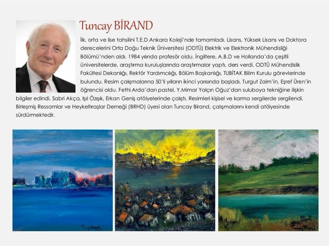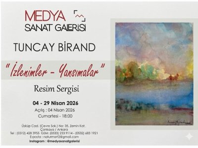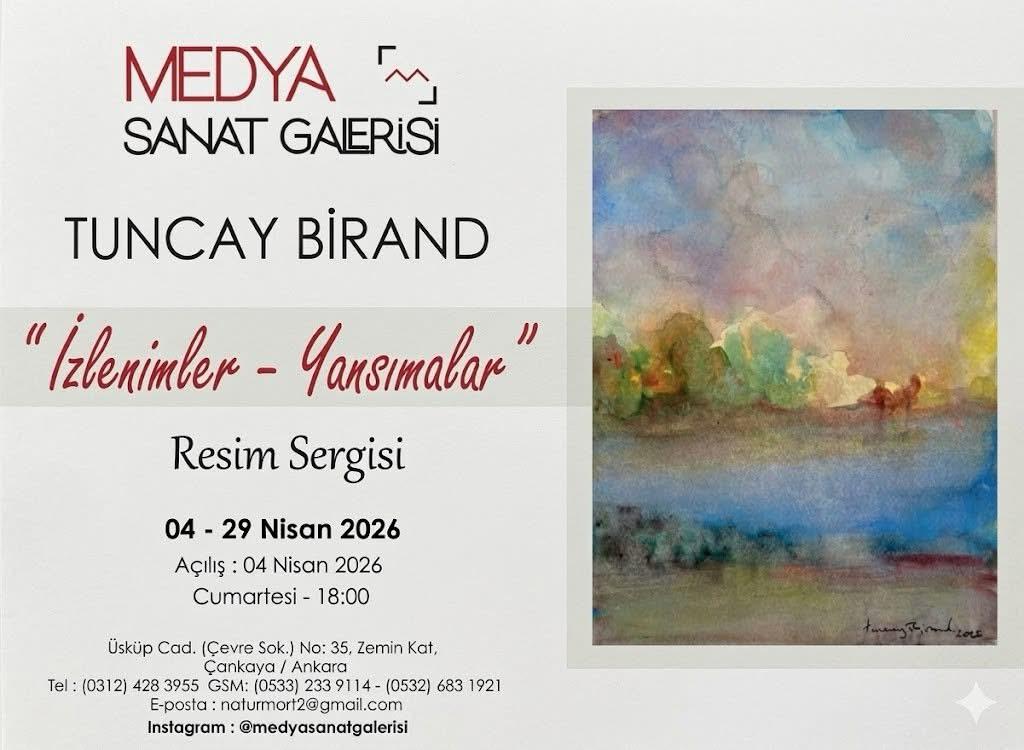 Odamız üyesi emekli akademisyen (ODTÜ ve Gazi Üniversitesi) Prof. Dr. Tuncay Birand’ın suluboya, yağlıboya ve akrilik tablolardan oluşan kişisel resim sergisi 4 Nisan 2026 Cumartesi günü saat 18:00`de MEDYA SANAT GALERİSİNDE açılıyor, 29 Nisan 2026 tarihine kadar, Pazar günleri hariç her gün saat 13:00-19:00 saatleri arasında ziyaret edilebilecek.