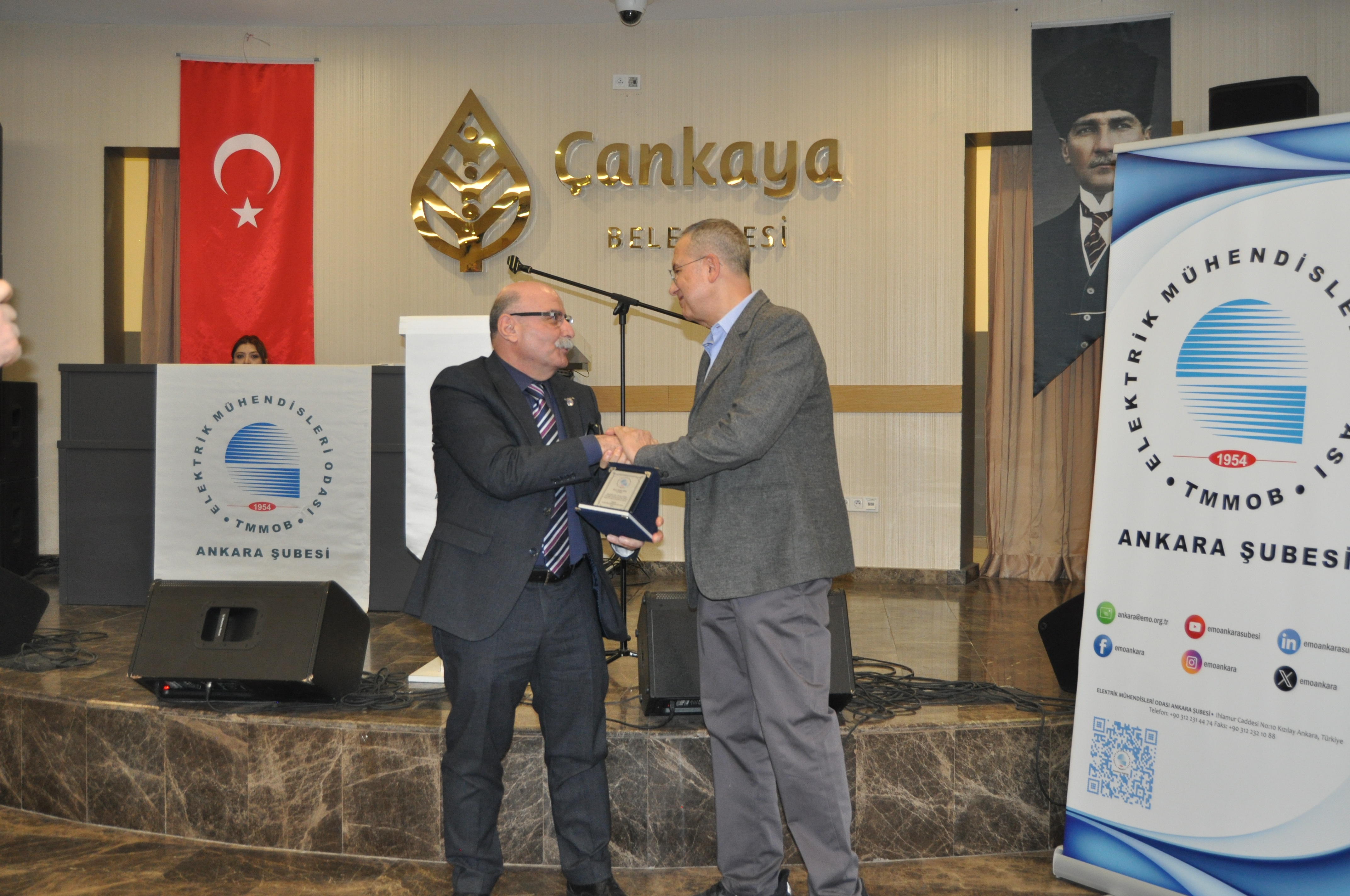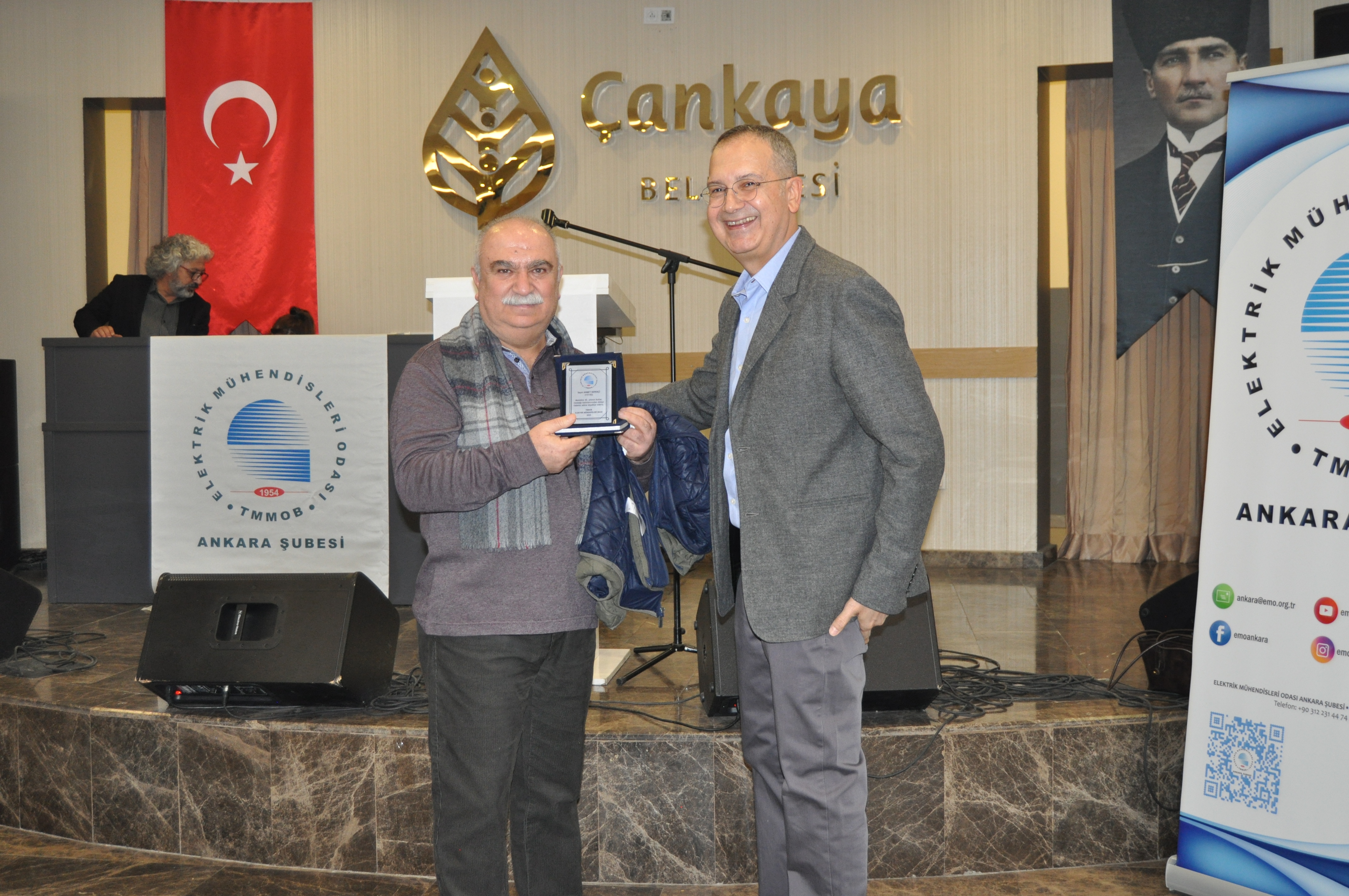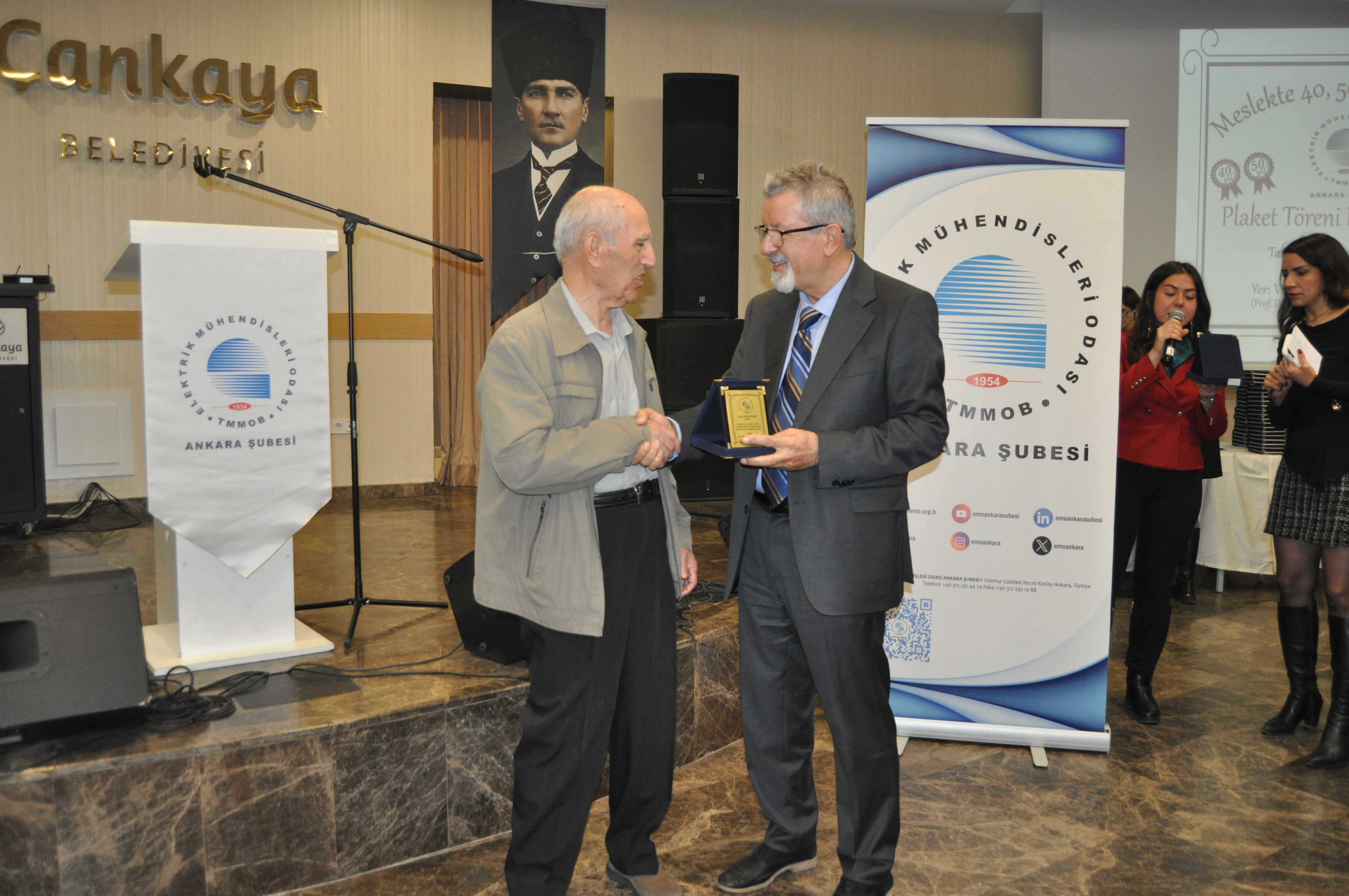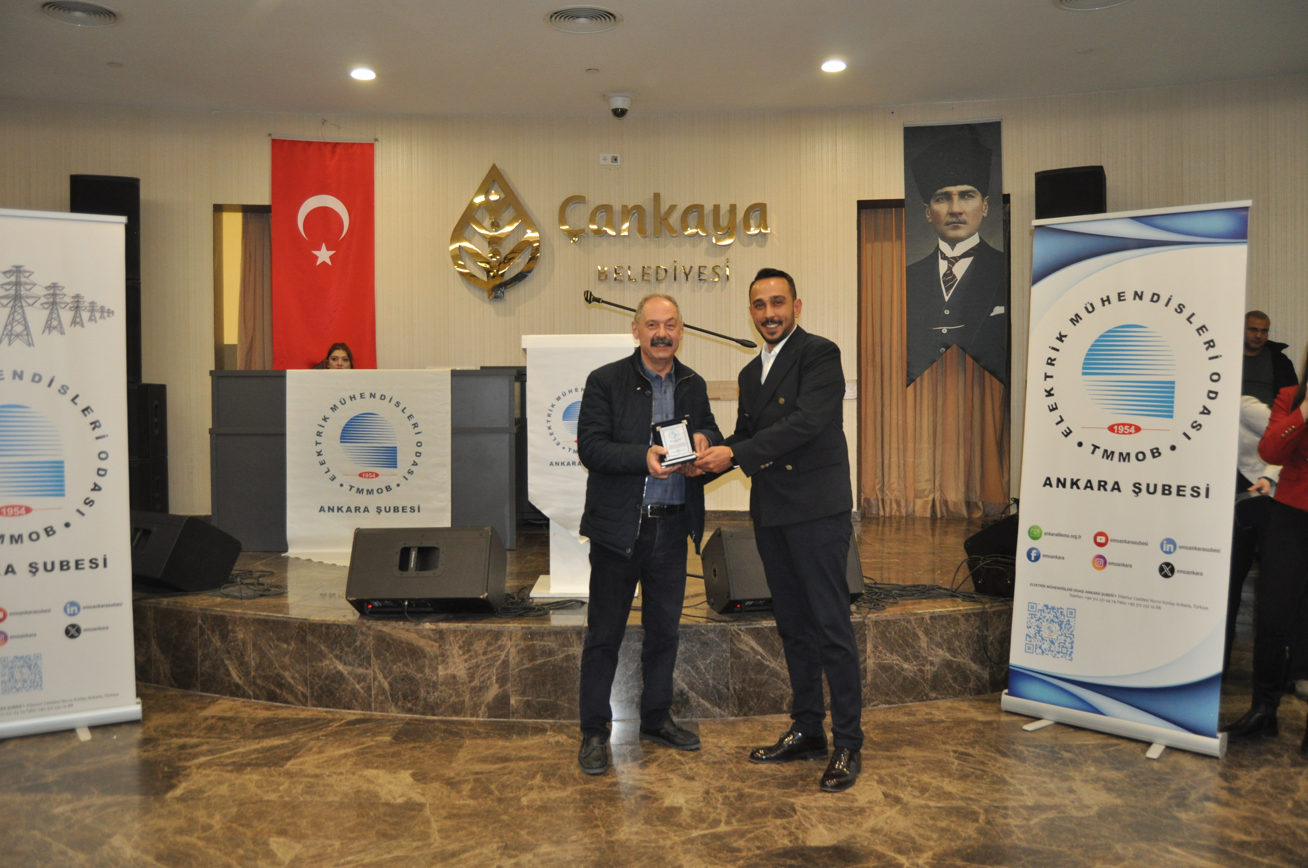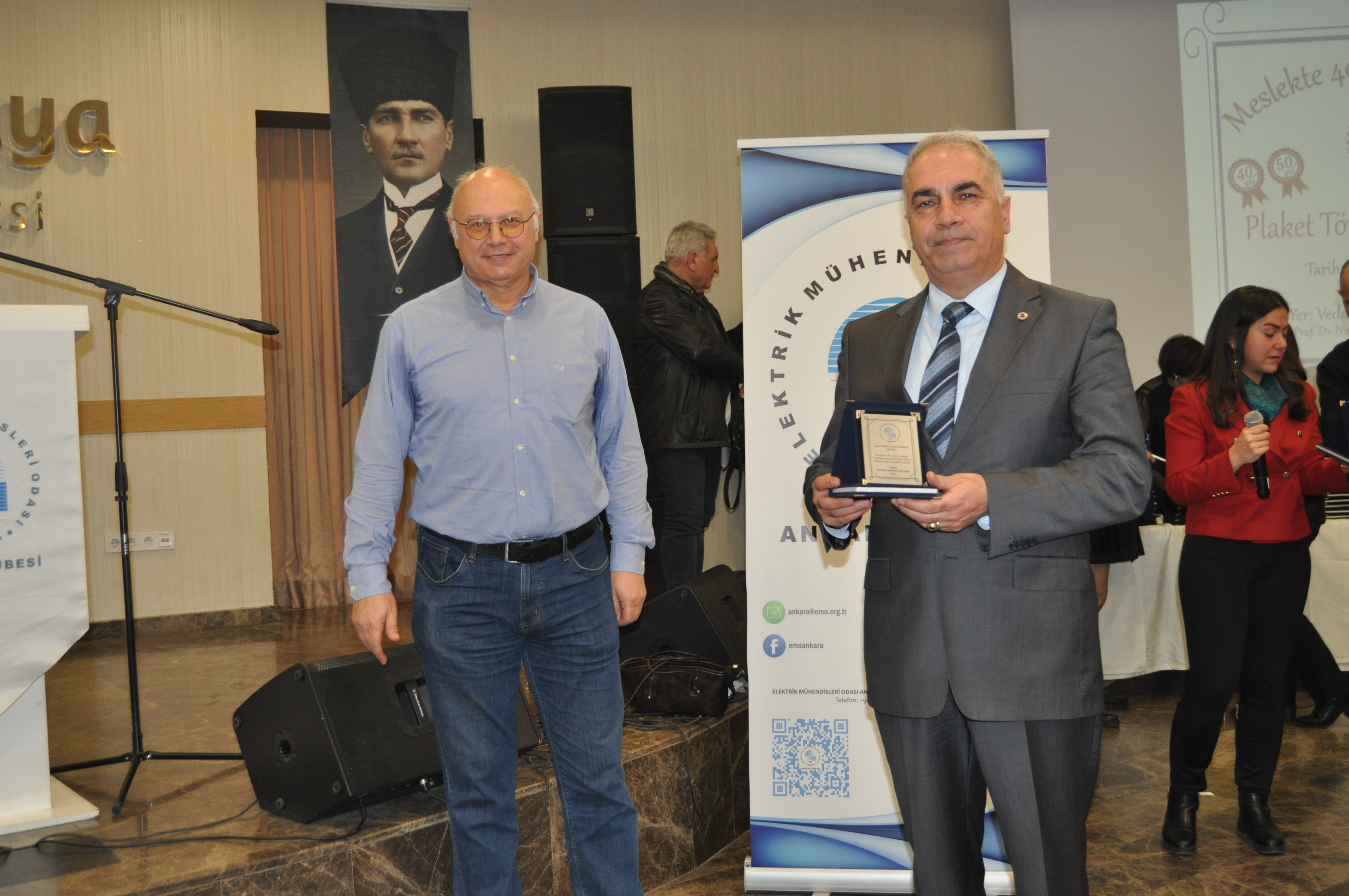 Törenin açılış konuşmasını EMO Ankara Şubesi Yönetim Kurulu Başkanı Ramazan Pektaş yaptı. Meslek yaşamına yaklaşık yarım asır emek veren üyeler ile böyle anlamlı bir törende bir arada olmaktan heyecan duyduğunu belirten Pektaş, EMO`nun geçmişi, bugünü ve geleceğini bu salonda gördüğünü, daha gidecek çok yol, yapacak çok iş olduğunu söyledi. Mesleğin duayenlerinin bilgi ve birikimleri bizlerin yolunu aydınlatıyor diyen Pektaş, siz değerli büyüklerimizin bu uzun meslek yaşamında bize kattığı değerleri çoğaltarak gençlerle paylaşmak bize bırakılmış bir emanettir. Bu bağlamda EMO Ankara Şubesi olarak 28. Dönem Çalışma Programımızda da öncelikli olarak genç meslektaşlarımız ve meslektaş adaylarımız ile bir araya gelerek onların EMO çatısı altında daha aktif yer almalarını sağlamayı hedeflemekteyiz, bu meşaleyi kuşaktan kuşağa aktarmak sizlere sözümüz, gençlere de borcumuzdur diye konuştu. Pektaş`ın konuşmasının ardından başlayan tören ile üyelerimize plaketleri takdim edildi.