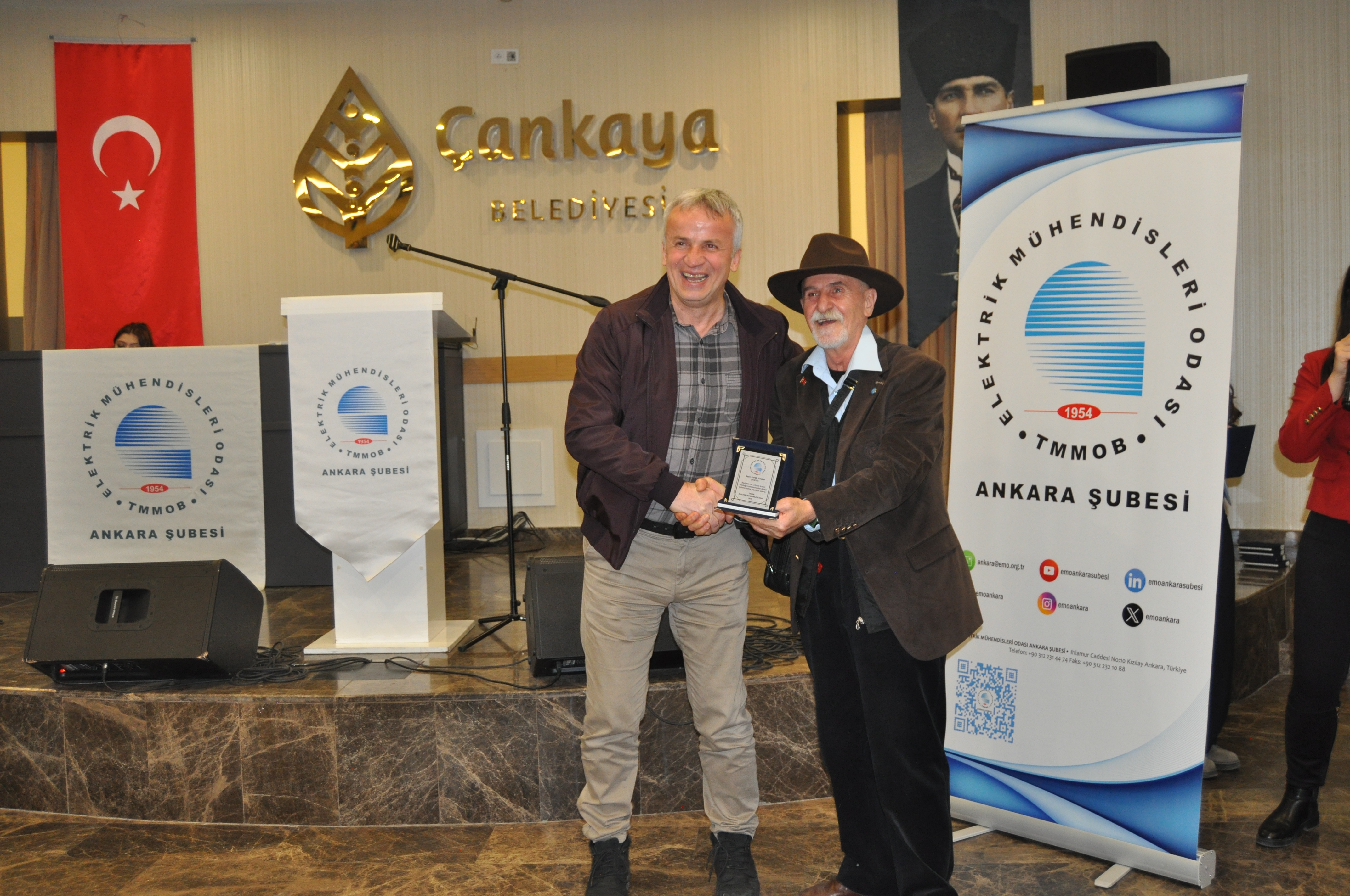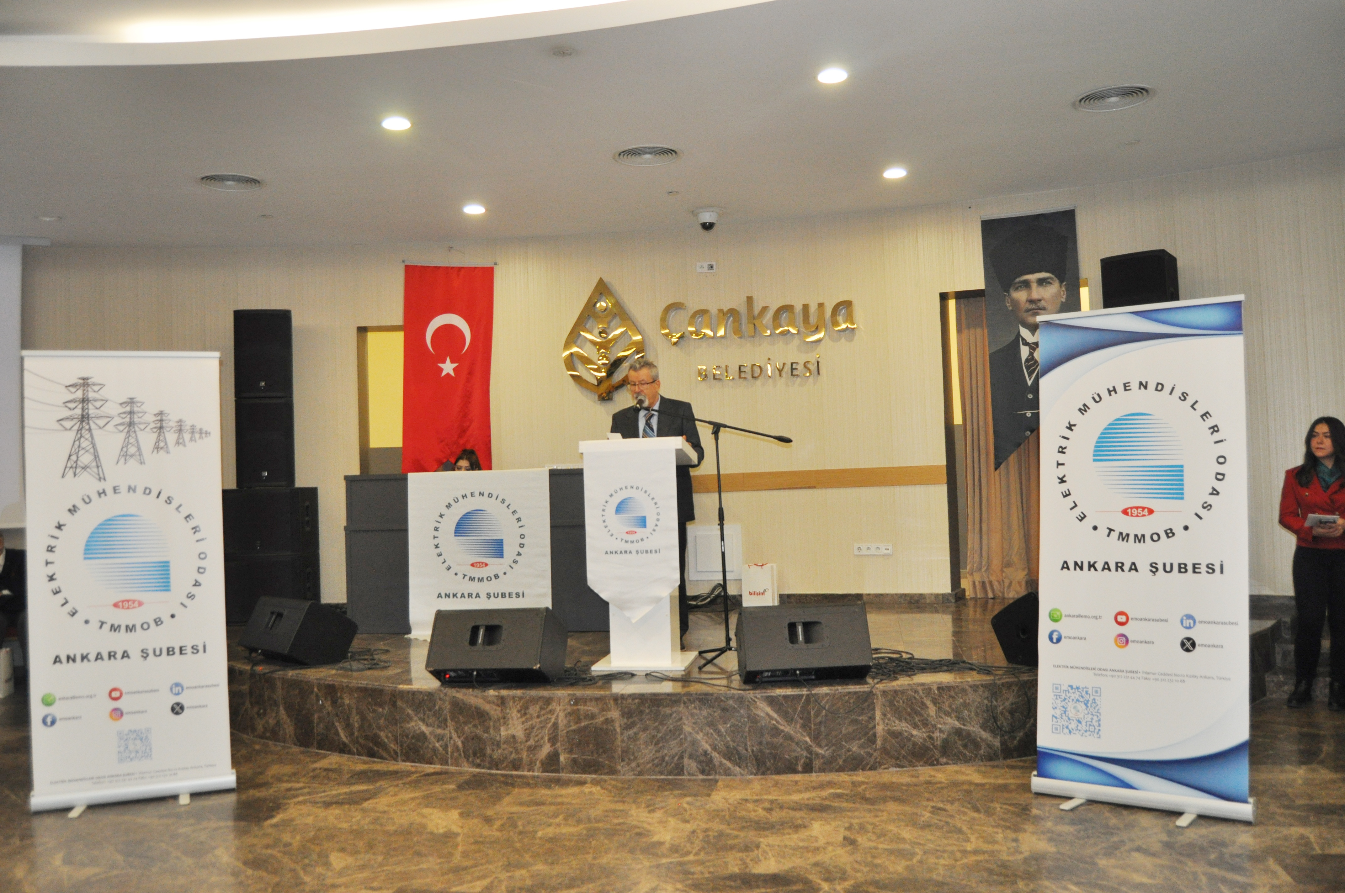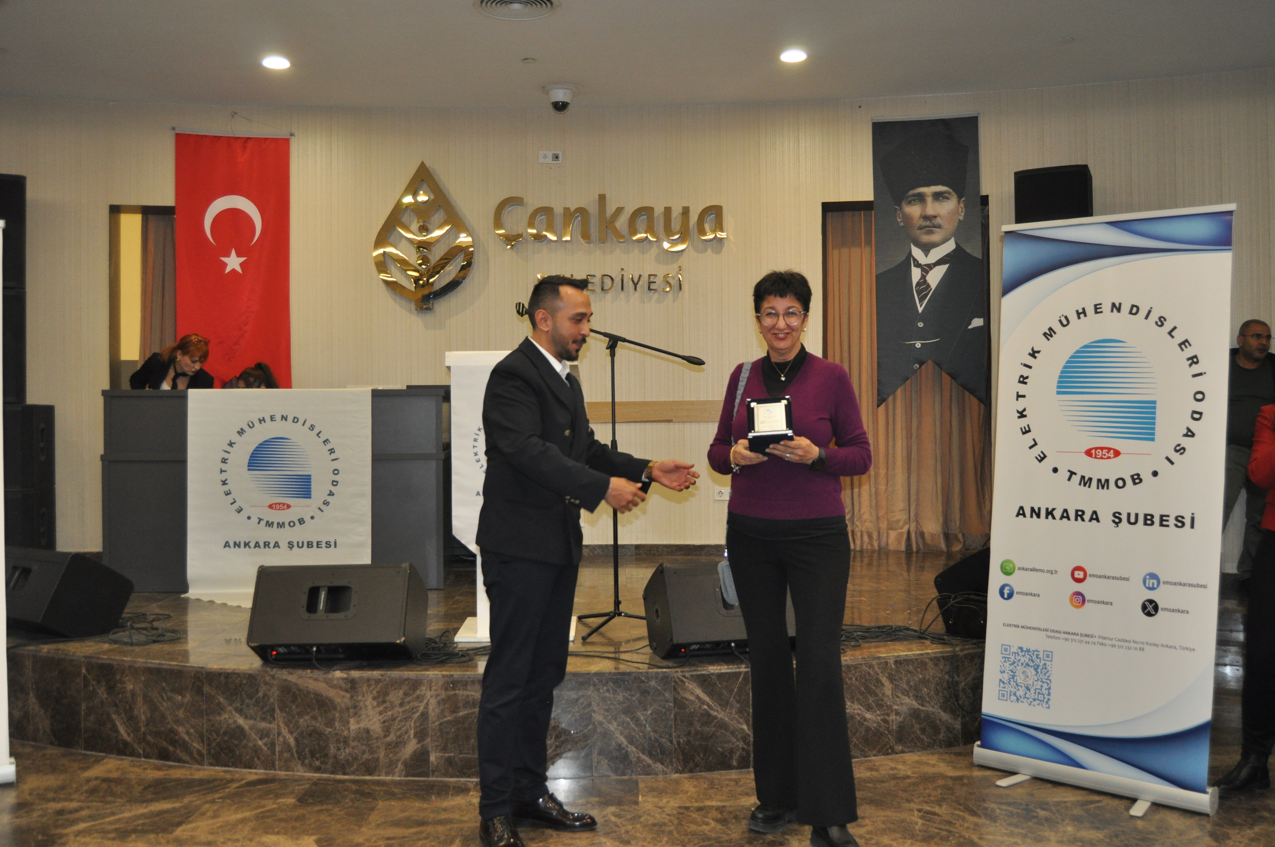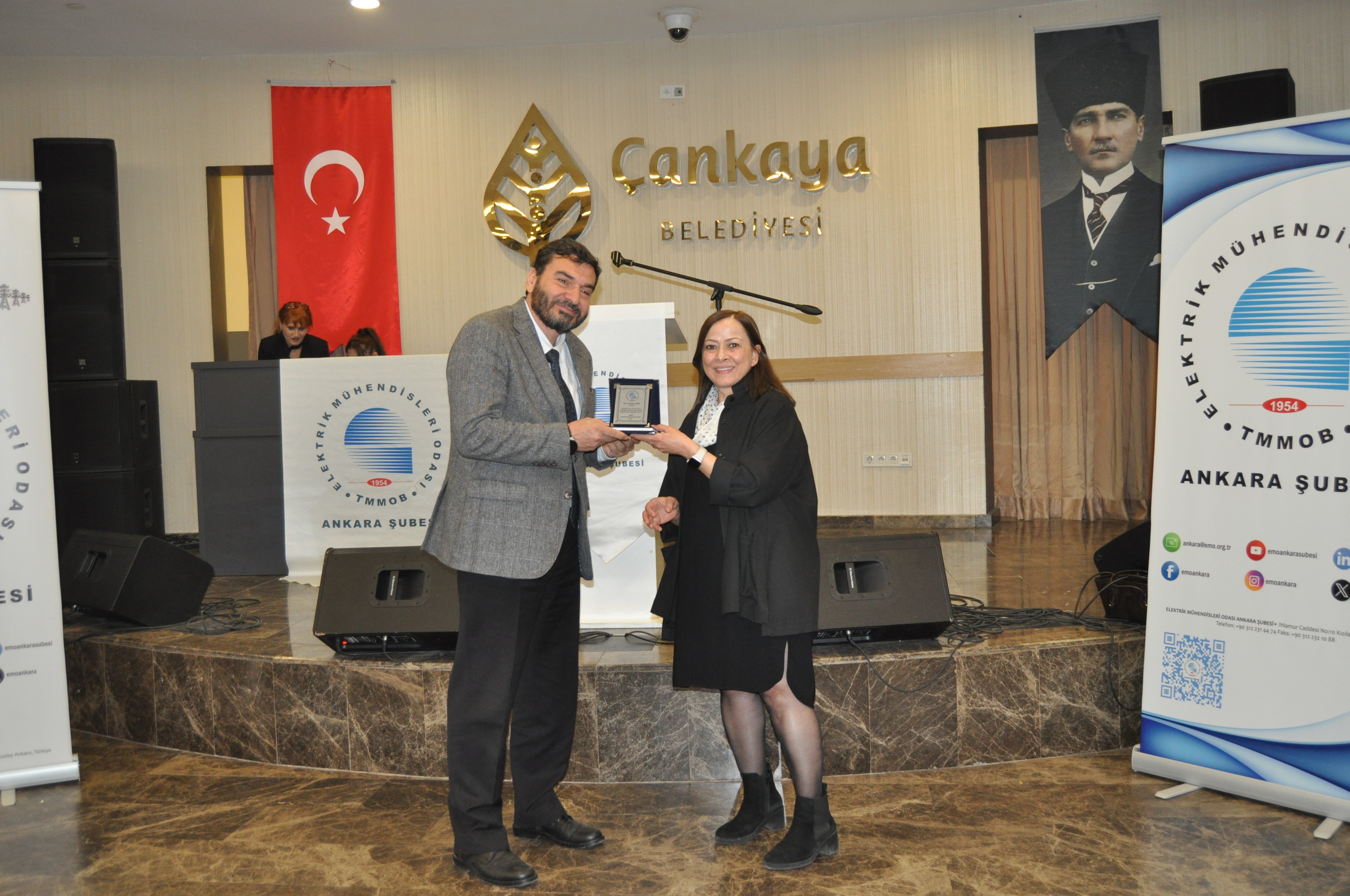 Törenin açılış konuşmasını EMO Ankara Şubesi Yönetim Kurulu Başkanı Ramazan Pektaş yaptı. Meslek yaşamına yaklaşık yarım asır emek veren üyeler ile böyle anlamlı bir törende bir arada olmaktan heyecan duyduğunu belirten Pektaş, EMO`nun geçmişi, bugünü ve geleceğini bu salonda gördüğünü, daha gidecek çok yol, yapacak çok iş olduğunu söyledi. Mesleğin duayenlerinin bilgi ve birikimleri bizlerin yolunu aydınlatıyor diyen Pektaş, siz değerli büyüklerimizin bu uzun meslek yaşamında bize kattığı değerleri çoğaltarak gençlerle paylaşmak bize bırakılmış bir emanettir. Bu bağlamda EMO Ankara Şubesi olarak 28. Dönem Çalışma Programımızda da öncelikli olarak genç meslektaşlarımız ve meslektaş adaylarımız ile bir araya gelerek onların EMO çatısı altında daha aktif yer almalarını sağlamayı hedeflemekteyiz, bu meşaleyi kuşaktan kuşağa aktarmak sizlere sözümüz, gençlere de borcumuzdur diye konuştu. Pektaş`ın konuşmasının ardından başlayan tören ile üyelerimize plaketleri takdim edildi.