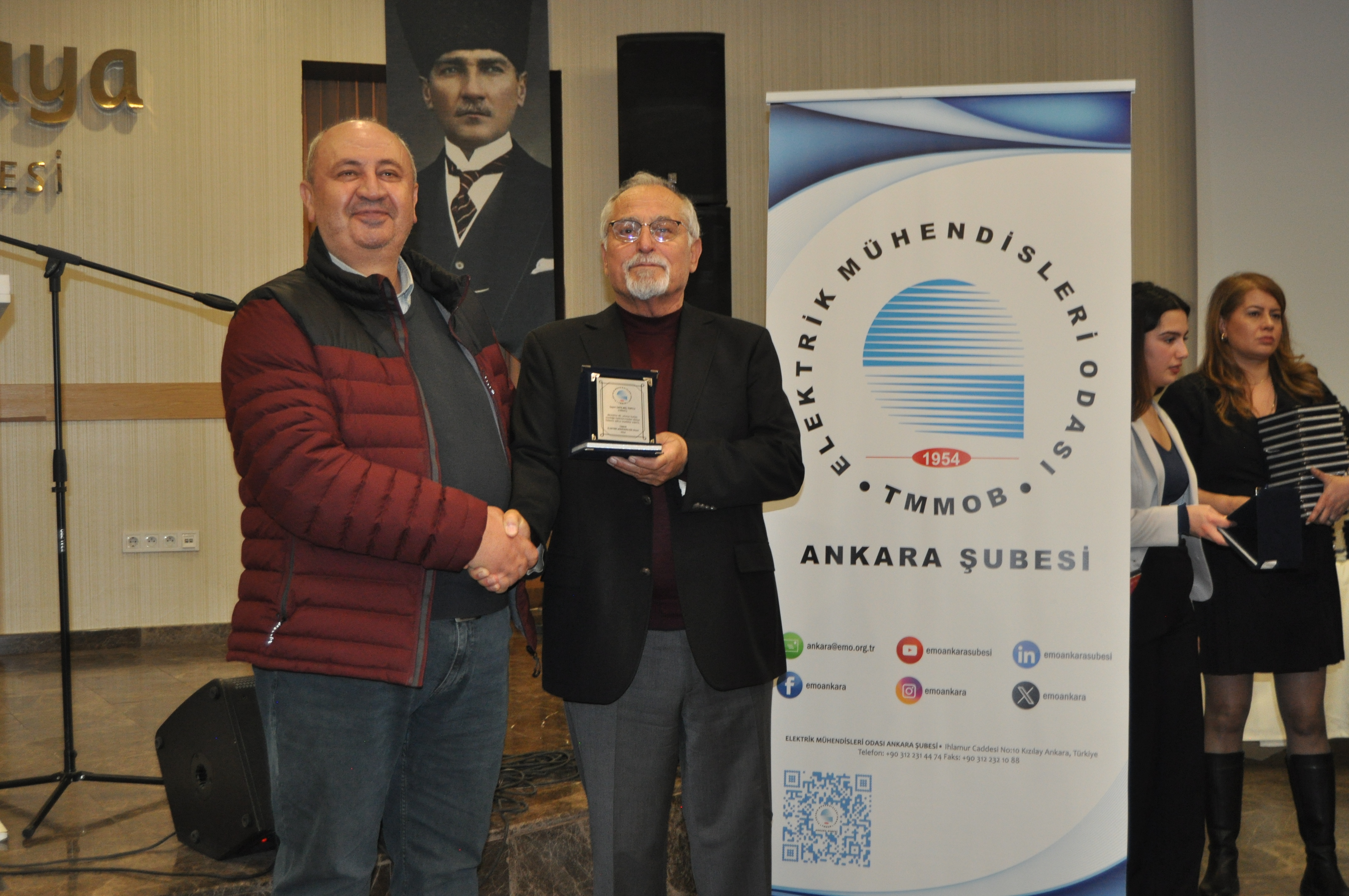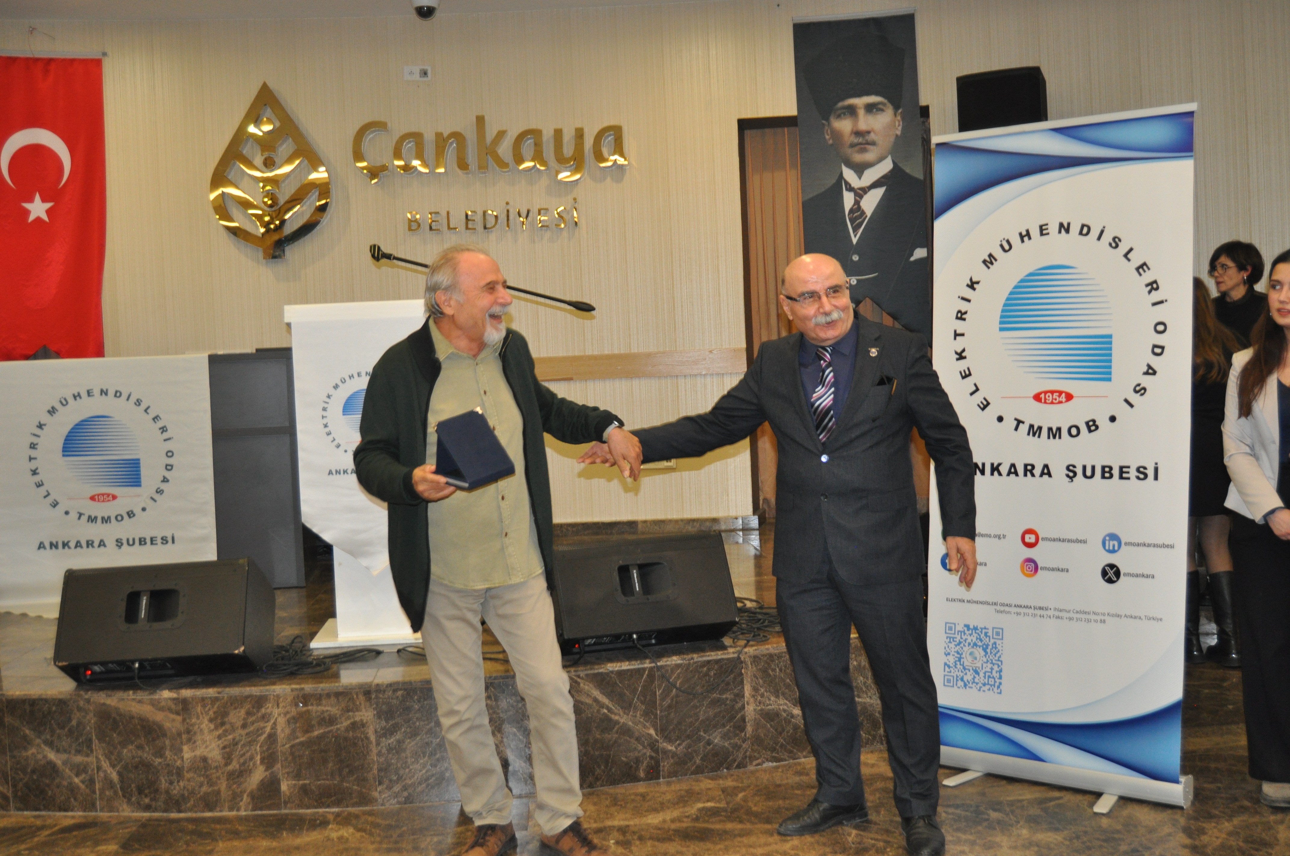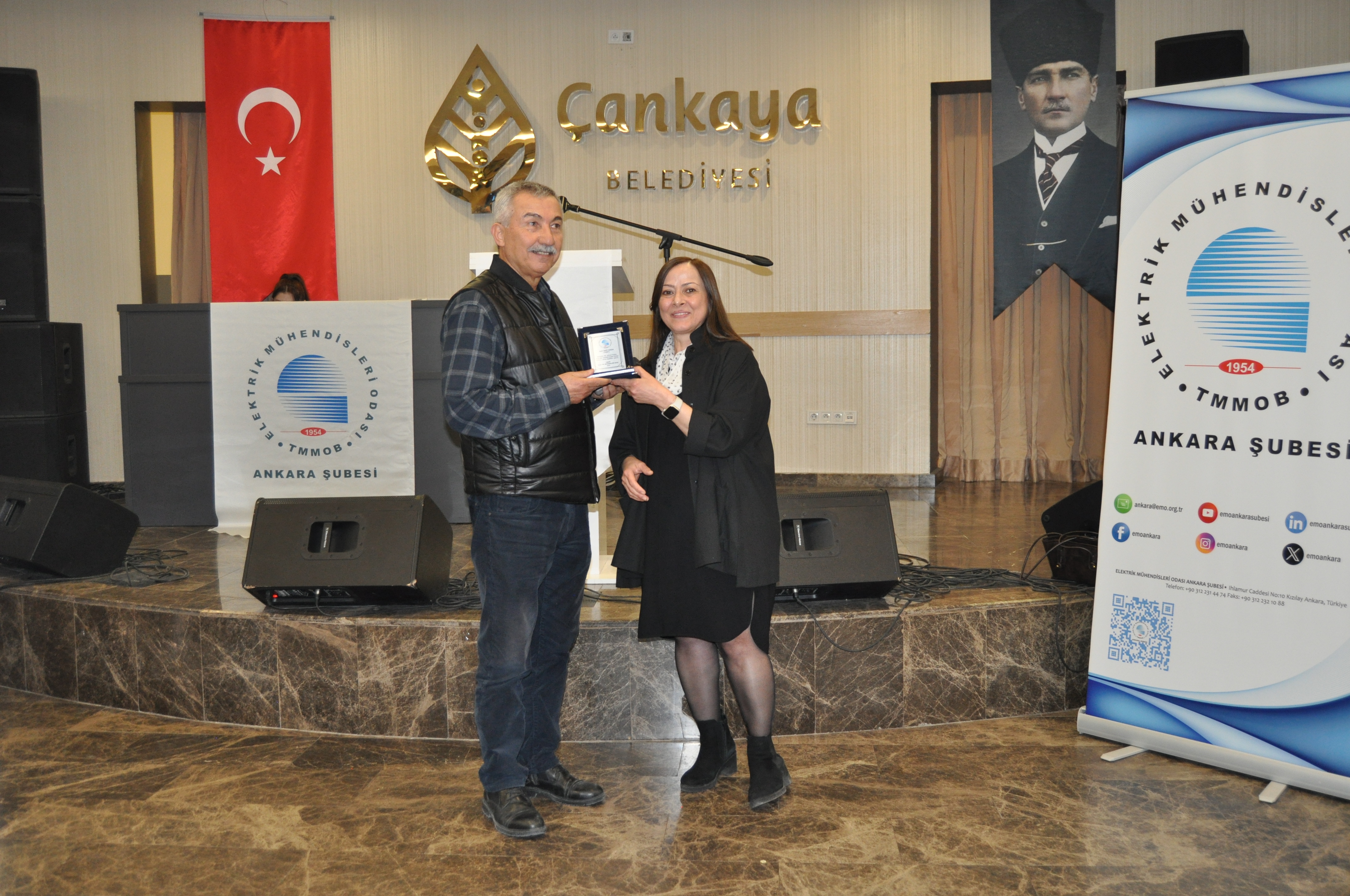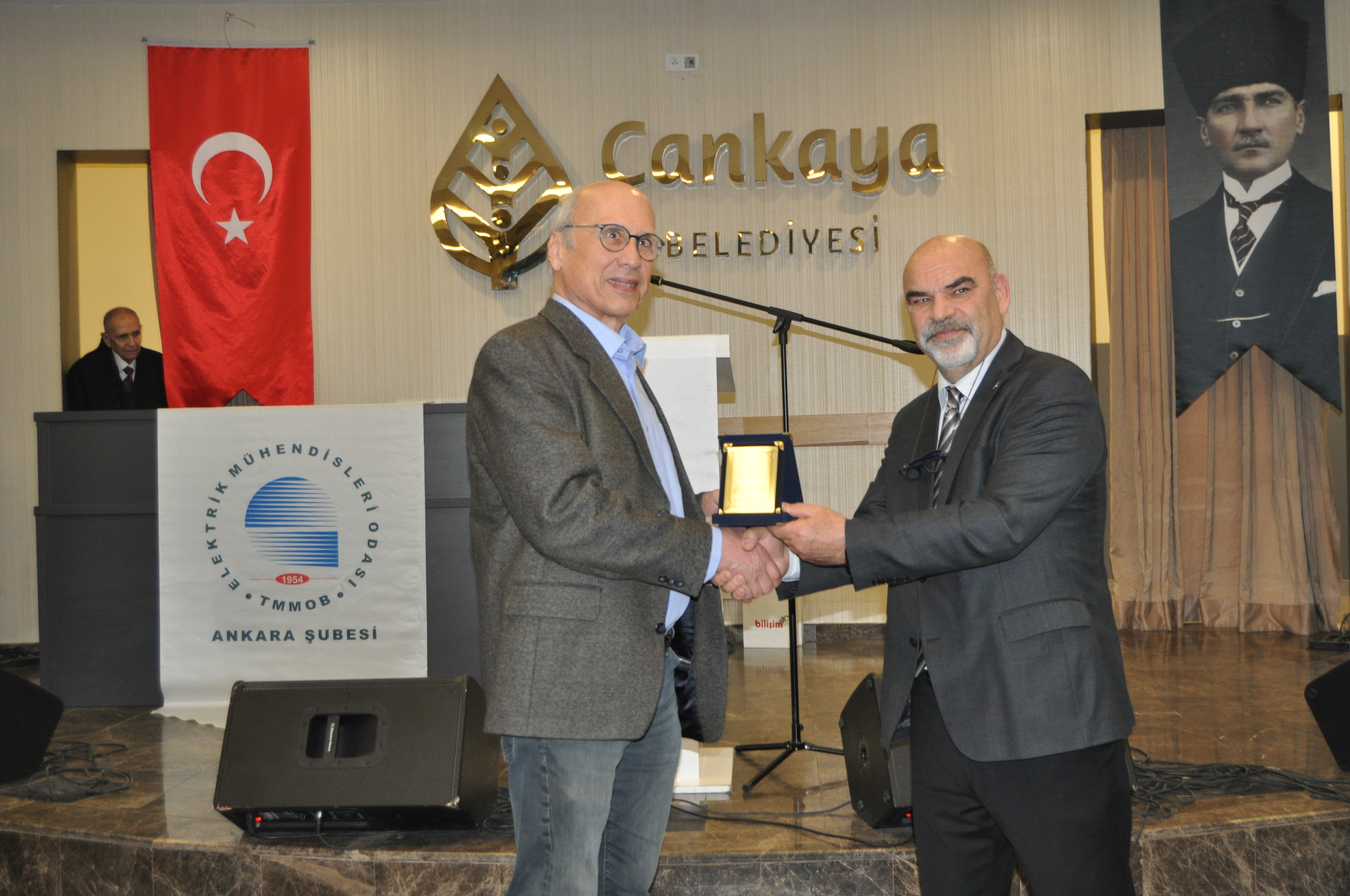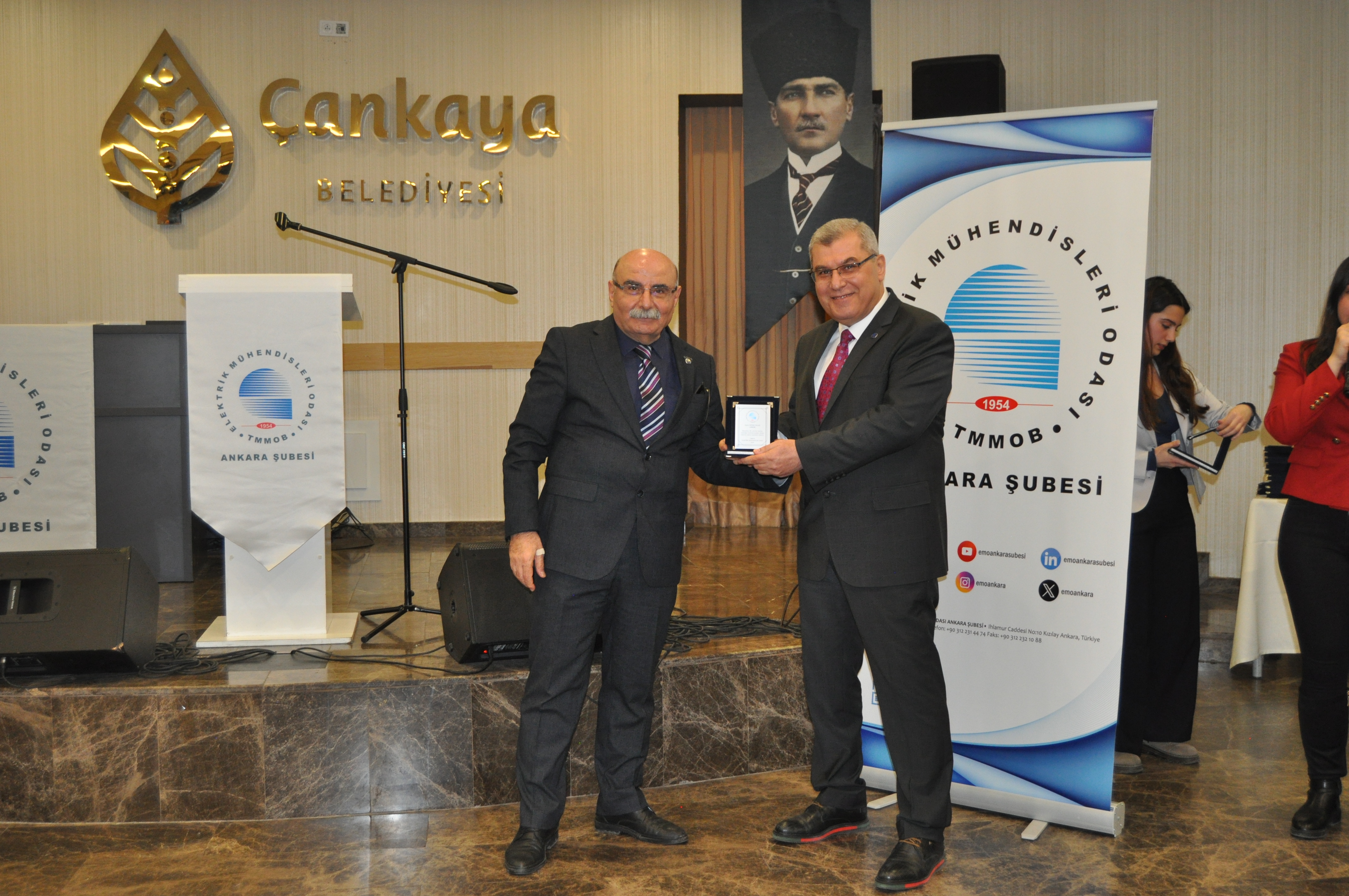 Törenin açılış konuşmasını EMO Ankara Şubesi Yönetim Kurulu Başkanı Ramazan Pektaş yaptı. Meslek yaşamına yaklaşık yarım asır emek veren üyeler ile böyle anlamlı bir törende bir arada olmaktan heyecan duyduğunu belirten Pektaş, EMO`nun geçmişi, bugünü ve geleceğini bu salonda gördüğünü, daha gidecek çok yol, yapacak çok iş olduğunu söyledi. Mesleğin duayenlerinin bilgi ve birikimleri bizlerin yolunu aydınlatıyor diyen Pektaş, siz değerli büyüklerimizin bu uzun meslek yaşamında bize kattığı değerleri çoğaltarak gençlerle paylaşmak bize bırakılmış bir emanettir. Bu bağlamda EMO Ankara Şubesi olarak 28. Dönem Çalışma Programımızda da öncelikli olarak genç meslektaşlarımız ve meslektaş adaylarımız ile bir araya gelerek onların EMO çatısı altında daha aktif yer almalarını sağlamayı hedeflemekteyiz, bu meşaleyi kuşaktan kuşağa aktarmak sizlere sözümüz, gençlere de borcumuzdur diye konuştu. Pektaş`ın konuşmasının ardından başlayan tören ile üyelerimize plaketleri takdim edildi.