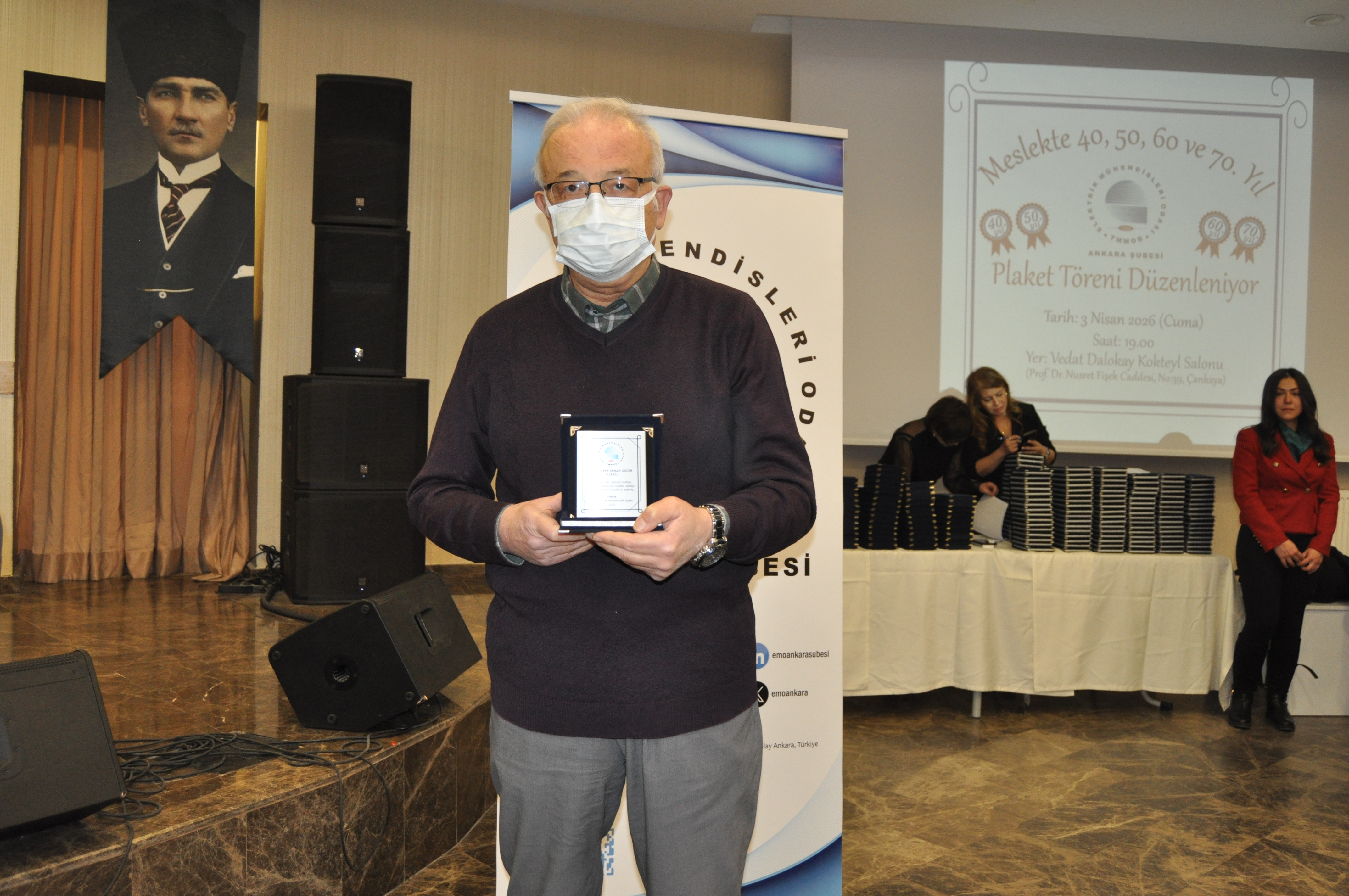 EMO Ankara Şubesi tarafından meslek yaşamlarında 40, 50, 60 ve 70. Yıllarını dolduran üyelerimize 3 Nisan 2026 Cuma günü plaket töreni düzenlendi.