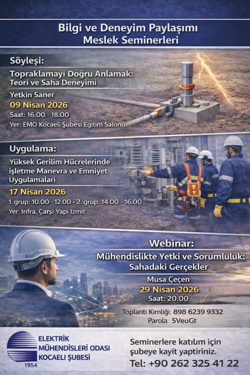 Elektrik Mühendisleri Odası Kocaeli Şubesi olarak; alanında uzman isimlerle birlikte, mesleki bilgi ve saha deneyimini buluşturduğumuz seminer serimize sizleri davet ediyoruz.