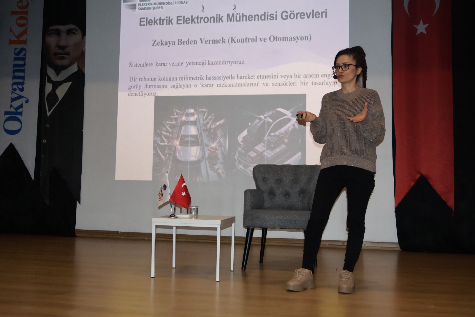 Elektrik Mühendisleri Odası (EMO) Samsun Şubesi, `Kariyer Günleri` kapsamında düzenlediği eğitim seminerlerine ara vermeksizin devam ediyor. Mafen Eğitim Kurumları ile başlatılan seminer dizisinin ikinci ayağı, Okyanus Koleji öğrencilerinin yoğun katılımıyla 8 Nisan 2026 tarihinde gerçekleştirildi.