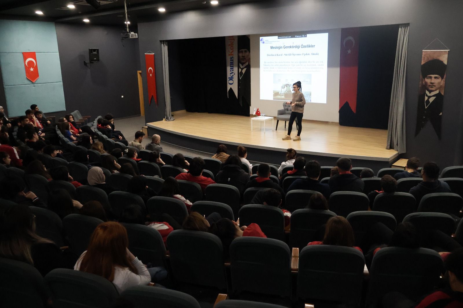Geleceğin Mühendis Adaylarıyla Profesyonel Buluşma Gençlerin mesleki yönelimlerine ışık tutmak amacıyla düzenlenen seminerde, Yönetim Kurulu Üyesi Elektrik Elektronik mühendisi Aslı Kayalar Okyanus Koleji öğrencileriyle bir araya gelerek kapsamlı bir sunum gerçekleştirdi. Mühendislik mesleğinin sadece teknik bir disiplin değil, aynı zamanda bir vizyon işi olduğunun vurgulandığı etkinlikte, sahadaki operasyonel süreçler ve sektörün geleceği detaylandırıldı. Seminerde özellikle şu başlıklar öne çıktı: * Akademik Hazırlık ve Kariyer Planlama: Mühendislik eğitimi süresince dikkat edilmesi gereken temel yetkinlikler. * Enerjinin Geleceği: Yenilenebilir enerji kaynakları ve dijitalleşen şebeke sistemleri. * Mesleki Etik ve Sorumluluk: Mühendis