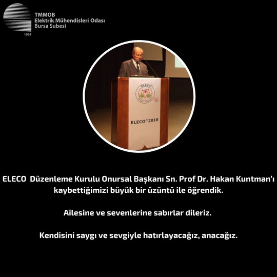 ELECO Düzenleme Kurulu Onursal Başkanı Prof. Dr. Hakan KUNTMAN` ı kaybettiğimizi büyük bir üzüntüyle öğrendik. Ailesine ve sevenlerine sabırlar dileriz. Kendisini saygı ve sevgiyle hatırlayacağız, anacağız.