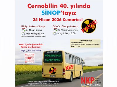 26 Nisan 1986 yılında gerçekleşen Çernobil Nükleer Santral Kazasının 40. Yılında, Sinop’ta nükleer karşıtı miting düzenleniyor. 25 Nisan 2026 (Cumartesi) tarihinde gerçekleştirilecek olan miting için Nükleer Karşıtı Platform (NKP) Ankara Bileşenleri tarafından araç kaldırılacaktır. Araçlarda yer almak için haberimizin devamındaki bağlantıdan kayıt yaptırmak gerekmektedir. Miting ve araç kalkış saatleri ile ilgili ayrıntılı bilgi haberimizin devamındadır.