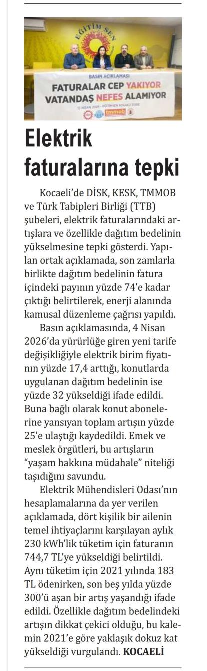 `ELEKTRİK ZAMMI GERİ ÇEKİLMELİ`
