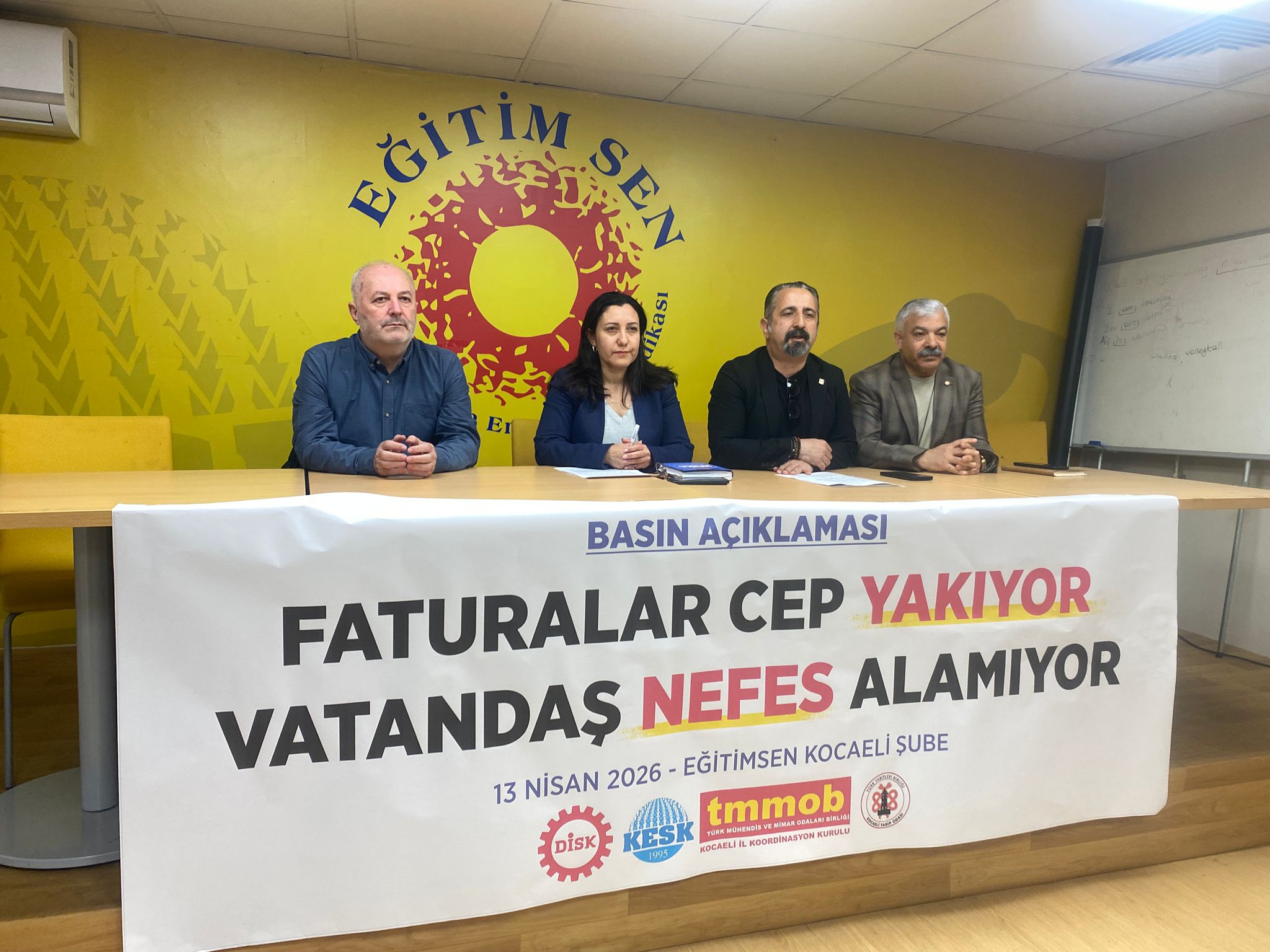 13 Nisan 2026 Pazartesi günü Elektrik Mühendisleri Odası (EMO) Kocaeli Şubesi olarak, DİSK, KESK, TMMOB ve TTB Kocaeli bileşenleri ile birlikte 13 Nisan 2026 tarihinde gerçekleştirdiğimiz basın açıklamasında, elektrik faturalarına yapılan zamları ve enerji politikalarını kamuoyuyla paylaştık.