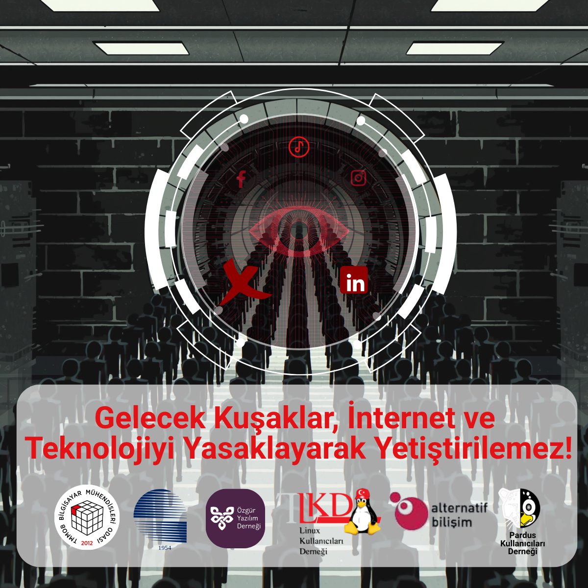 Sosyal medya platformlarına erişimde e-Devlet Kapısı üzerinden kimlik doğrulamasını zorunlu kılan düzenlemeye ilişkin Elektrik Mühendisleri Odası (EMO) ve Bilgisayar Mühendisleri Odası (BMO); Alternatif Bilişim Derneği, Linux Kullanıcıları Derneği (LKD), Özgür Yazılım Derneği (ÖYD), Pardus Kullanıcıları Derneği (PKD) ile birlikte 24 Nisan 2026’da ortak bir açıklama yayımladı.