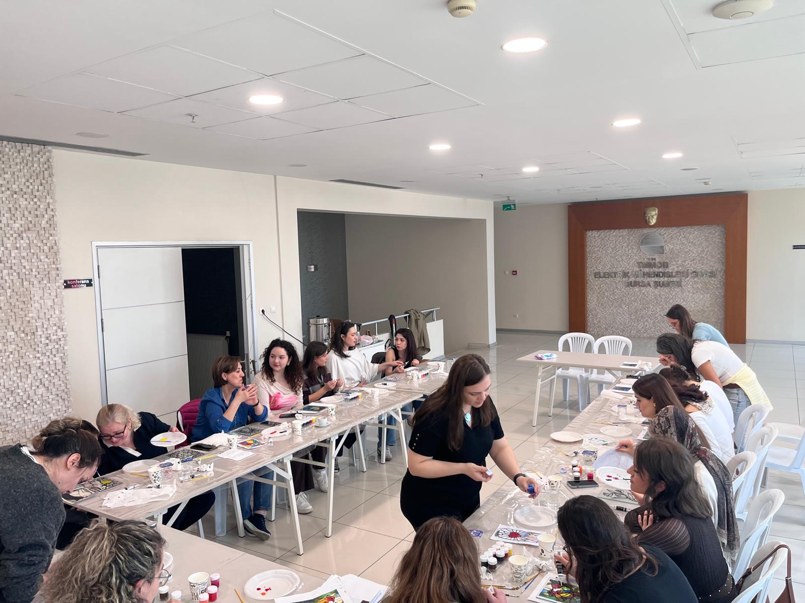 TMMOB Elektrik Mühendisleri Odası Bursa Şubesi Kadın Mühendisler Komisyonu tarafından kadın üyelerimize özel olarak 25 Nisan 2026 Cumartesi günü Şubemizde Cam Boyama (Vitray) Etkinliği gerçekleştirilmiştir.