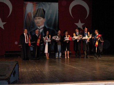 Uludağ Üniversitesi Mühendislik Mimarlık Fakültesi mezuniyet töreni 21 Haziran 2007 Perşembe günü saat 10.30 ‘da Fethiye Kültür Merkezi‘nde yapıldı. Mezuniyet törenine rektör yardımcısı Prof. Dr. Erdal EMEL, Mühendislik Mimarlık Fakültesi dekanı Prof. Dr. Sedat ÜLKÜ, Elektronik Mühendisliği Bölüm Başkanı Prof. Dr. Erdoğan DİLAVEROĞLU, diğer bölümlerin başkanları, öğretim üyeleri, mezun öğrenciler, öğrenci aileleri ve meslek odalarının yöneticileri katıldı. Mezuniyet töreninde bölümlerini derece ile bitiren öğrencilere çeşitli ödüller verildi. Uludağ Üniversitesi Mühendislik Mimarlık Fakültesi Elektronik müendisliği bölümünü derece ile bitiren İrem Özen, Sunay Türkdoğan, İlker Dursun, Ceyda Gülen Akyıldız, Kemal Rodoplu ve Barış Çelikçapraz‘ a ödüllerini Şubemiz Yönetim Kurulu Başkanı Erdal Aktuğ verdi. Bütün genç meslektaşlarımıza mesleğimizdeki yeni yaşamlarında başarılar diliyoruz.