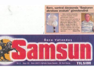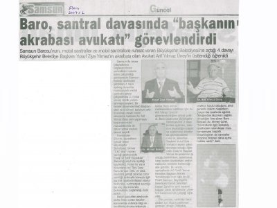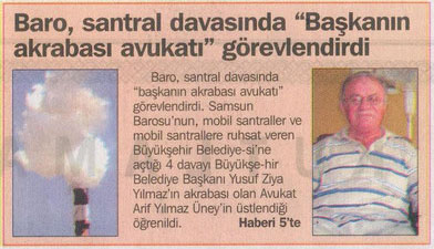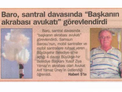 Samsun Barosu'nun mobil santrallar ve mobil santrallara ruhsat veren Büyükşehir Belediyesi'ne açtığı 4 davayı Büyükşehir Belediye Başkanı Yusuf Ziya Yılmaz'ın akrabası olan Avukat Arif Yılmaz Üney'in üstlendiği öğrenildi