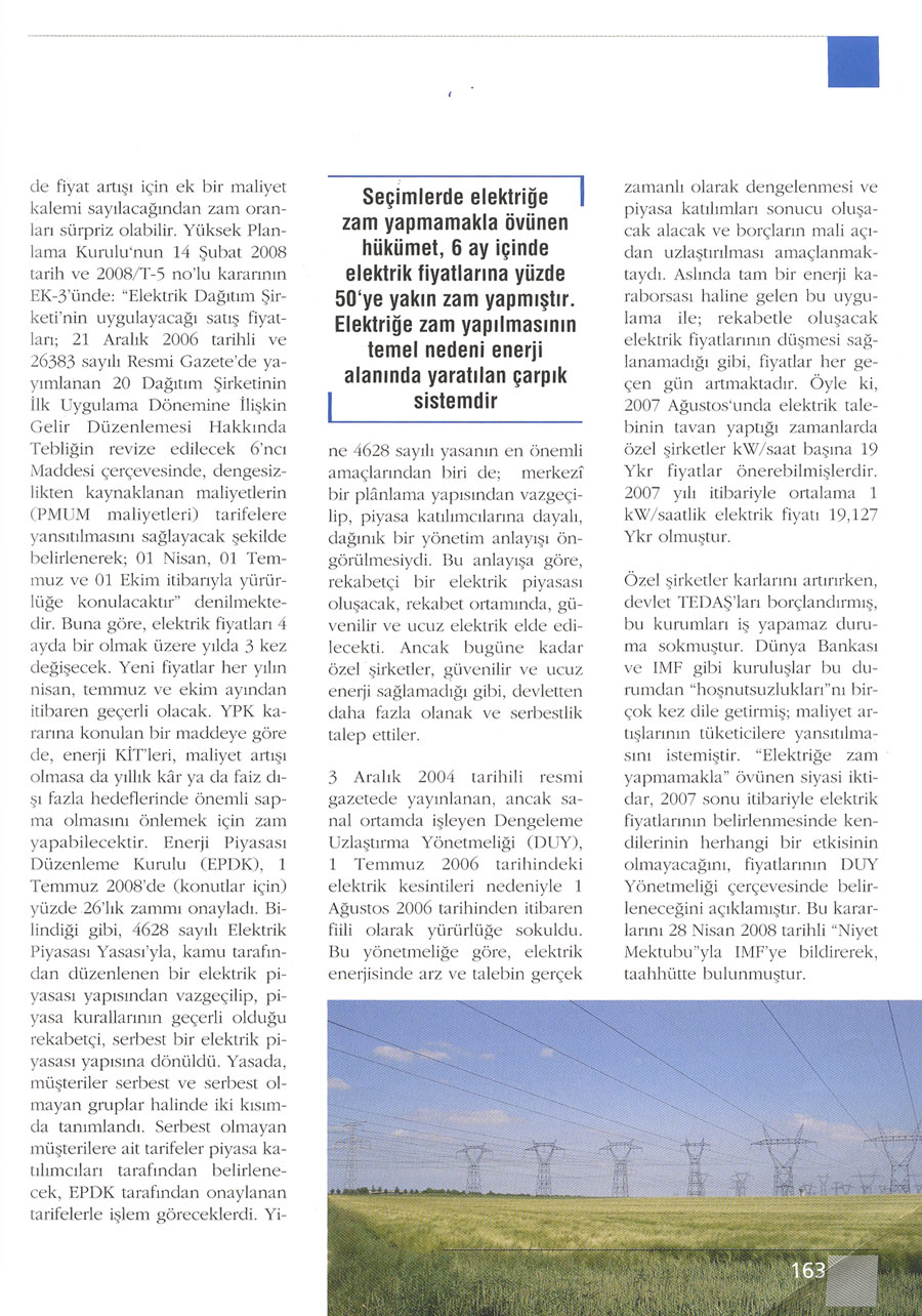 3E ELECTRONİCS DERGİSİNİN TEMMUZ 08 SAYISINDA ELEKTRİK ZAMLARI VE ELEKTRİK SAYAÇLARI HAKKINDA DOSYA YAYIMLANDI.