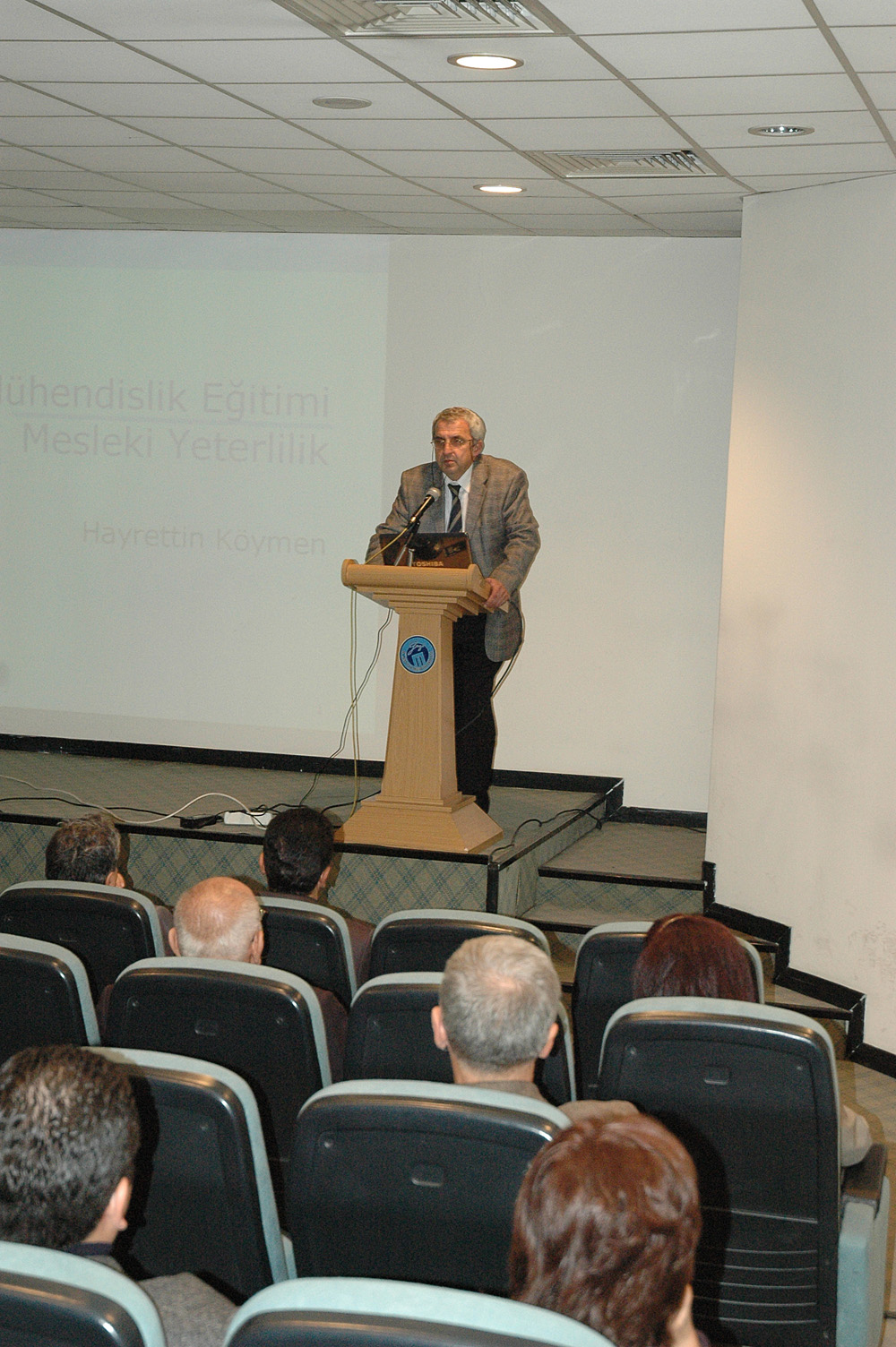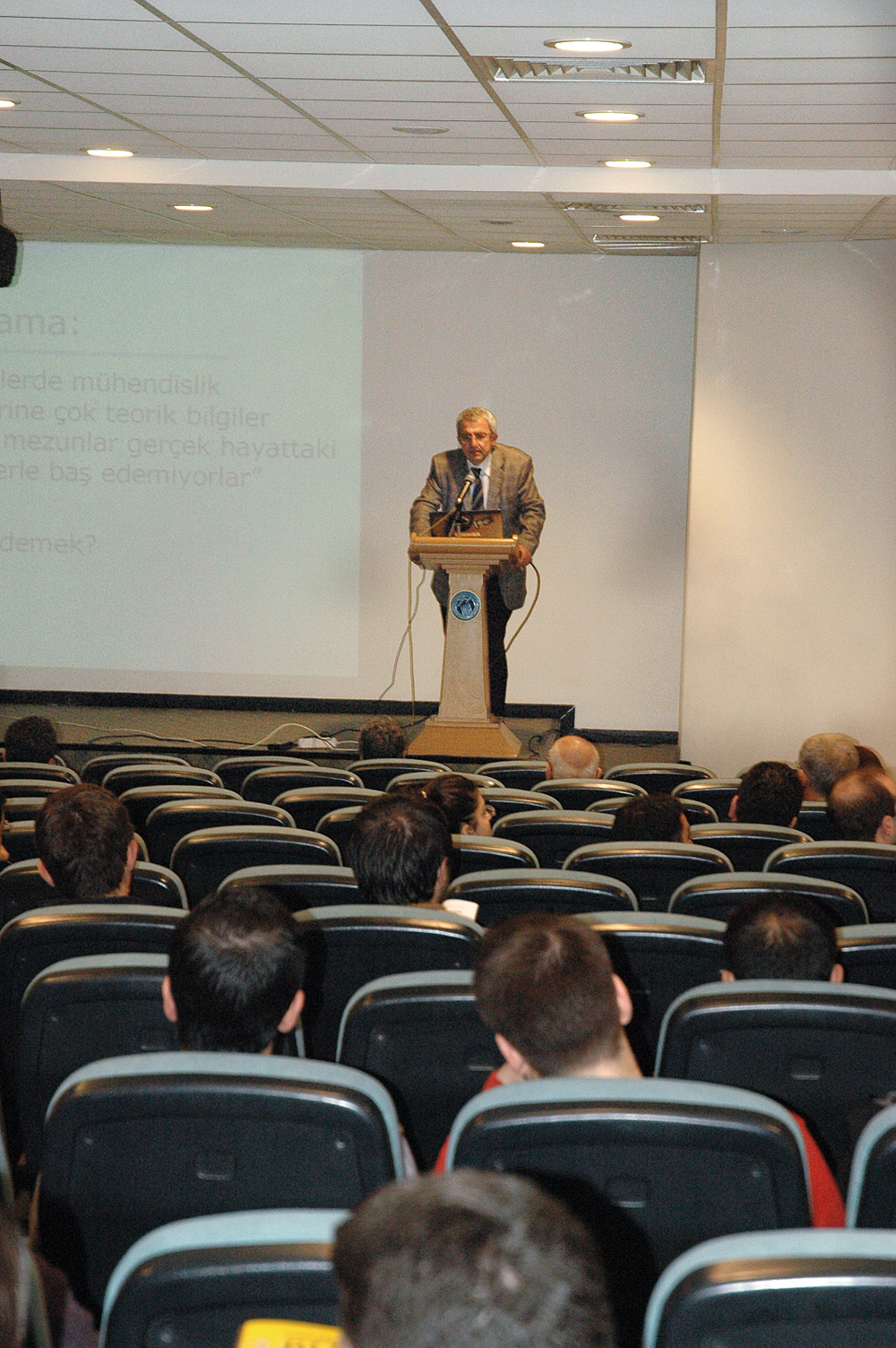 Gazi Üniversitesi Mühendislik-Mimarlık Fakültesi Akademi Salonu‘nda 19 Kasım 2008 Çarşamba günü gerçekleştirilen sunumun açılış konuşmasını yapan Gazi Üniversitesi Elektrik-Elektronik Mühendisliği Bölüm Başkanı Prof. Dr. M. Cengiz Taplamacıoğlu özetle şöyle konuştu, "EMO Ankara Şubesi‘nin Mühendislik Geliştirme Eğitimleri kapsamında başlattığı sunumların üçüncüsü için burada bulunuyoruz. İki hafta sonra üçüncü semineri yapacağız. Hayrettin Hoca yalnız kendi alanında değil aynı zamanda mühendislik ve eğitimi üzerinde birikimi olan bir hocamız. Güzel bir sunum olacağına inanıyorum. Biz mühendisler fazla okumayı sevmiyoruz. Kitaplara çoğu zaman baktığımız zaman -özellikle sosyal alanlardaki kitaplardan bahsediyorum-, kitapların arkasına ya da özetine bakıp inceleme eğilimimiz var. Buradaki sunum önemli bir konu. Çok güzel ve öz olarak derlediğine inanıyorum. Hayrettin Hocamızın güncellenmiş birikimlerini almak hepimiz için büyük şans." "Bilgi paylaşılıyorsa anlamlıdır" Taplamacıoğlu‘nun ardından söz alan EMO Ankara Şubesi Yönetim Kurulu Başkanı Ramazan Pektaş, Gazi Üniversitesi ile güzel bir işbirliği yapıldığını belirterek, "Bilgi paylaşılıyorsa anlamlıdır şiarından yola çıkarak bilgi birikimlerini yerellere yayma düşüncesinden yola çıkarak üniversitelerde, iş yerlerinde, organize bölgelerde bu sunumları yapma kararı aldık" dedi. Pektaş konuşmasında şunları söyledi, "Hepiniz yakın zamanda mühendis olacaksınız ve aynı gemide gideceğiz. EMO Ankara Şubesi olarak üç yıldır Mühendislik Geliştirme Eğitimleri adı verdiğimiz bir çalışmamış bulunuyor. Bu eğitimlerle sektörde yer alacak yeni mühendislere, öğrencilere sektörle, meslek alanlarıyla ilgili sunumlar aktarıyor, mühendis arkadaşlarımızın mesleğe hazırlanmalarını kolaylaştırıyoruz. Bu eğitimleri daha önceleri Şubenin eğitim merkezinde yapıyorduk. Bir süre sonra bu sunumlara gelen insanların aynı kişiler olduğunu fark ettik. Bu dönem eğitimleri üniversitelere ve iş yerlerine, organize bölgelerine taşıma kararı alındı. Gazi Üniversitesi Elektrik Elektronik Mühendisliği Bölümü‘ne katkılarından dolayı teşekkür ediyorum. Güzel bir işbirliği çünkü. Benzeri çalışmalar sürecek. Bir sonraki eğitim, mühendislikte belgelendirme olacak. Odamız üyeleri arasında farklı konularda bilgi birikimlerine sahip meslektaşlarımız var. Teknik olarak belli konularda sunum ihtiyacınız olursa bunu bize ya da Bölüm Hocalarınıza ilettiğinizde o konuda birikimi olan meslektaşlarımızı sizlerin bulunduğu ortamlara getireceğiz. "Mühendislik eğitimindeki problemler tanımlanmalı" Konuşmaların ardından sunumuna başlayan Prof. Dr. Hayrettin Köymen, mühendislik eğitiminde problemlerin tanımlanması gerektiğini vurgulayarak şöyle konuştu, "Mühendislik eğitim bütün mühendislik dalları için önemli ancak benim örneklerim elektrik mühendisliği ile ilgili. Genelde mühendislik eğitimiyle ilgili sorun nedir? Bunun somutlaştığı yer güncel söylemde yer alan çeşitli gözlemlerden kaynaklanan çeşitli görüşler var. Bir tanesi üniversite eğitiminin teorik bilgilerle sıkıştırıldığı bunun da gerçek problemlerle ilgisiz olduğunu ifade eden gözlem. Bu doğruysa üniversite eğitiminde ciddi sorun var. Gerçek mühendislik problemlerinin çözümünün teorik birikimi gerektirmediği yaygın bir söylemdir. Öncelikle gerçek mühendislik problemlerini tanımlamak lazım. Üniversiteden yeni mezun olan mühendisin uygulama deneyiminin yetersiz olduğuna yönelik bir söylemden bahsediyoruz. Bu bir saptama. Durum buysa bir şey yapmak lazım. Nasıl yapılacak kimlerin emeğiyle bu yapılacak buna bakmak lazım. Eğitim kurumlarının kendi tanımladığı hedeflere ulaşmak için oluşturdukları programların etkinliği uygun mu? Kurumların kendi tanımladığı hedeflere ulaşmak için oluşturdukları eğitim programları uygun mu bunu ölçmek için bir takım kurumlar var." Salondan gelen soruların yanıtlanması ile sunum sona erdi.